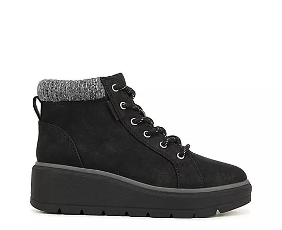 Comfy-cozy ankle boots with a sporty design and Feel Good Sneaker Tech create endless nice days for your feet and wardrobe in these Dr. Scholls Nice Day Max booties.Click this FOOTWEAR GUIDE to find the perfect fit and more! Comfy-cozy ankle boots with a sporty design and Feel Good Sneaker Tech create endless nice days for your feet and wardrobe in these Dr. Scholls Nice Day Max booties.Click this FOOTWEAR GUIDE to find the perfect fit and more! FEATURES Lace-up front and inside zip for easy on/off Stitch detailing and wedge sport sole Soft, lightweight outsole with built in flex grooves Fabric linings and topcloth partially made from recycled plastic bottles; partially recycled toe box and heel counter Repellant Systems: Protects your shoes from all types of water, oil and other stains Anti-microbial, anti-odor Insole Technology with cushioning, comfort, & support that uses 15% cushy plant-based BLOOM foam insoleDETAILS Synthetic, fabric upper Fabric lining Manmade outsole Round toe Foam footbed Multi-directional outsole 100% RPET Heel height: 1.875-in. Boot shaft height: 3.94-in. Boot shaft circumference: 11.61-in. Note: Measurements based on size 6 boot. For each half size larger, shaft height increases by .12-in., circumference by .20-in. Spot clean ImportedRESPONSIBLE Contains recycled polyester Global Recycled Standard Certified The antimicrobial properties do not protect users or others against bacteria, viruses, germs, or other disease organisms. Size: 8.5. Color: Black Faux. Gender: female. Age Group: adult.