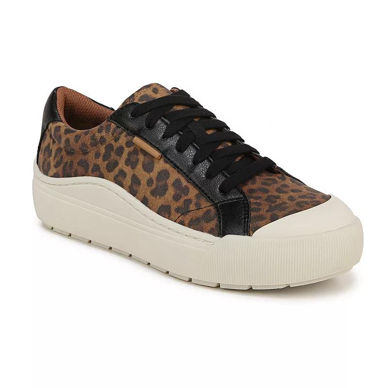 Dr. Scholl's Time Off Women's Platform Sneaker Slow down in the Time Off women's platform Sneaker from Dr. Scholl's. With a microfiber & faux leather upper featuring a retro-inspired toe cap for extra flair, these leopard print Sneakersalso have a Padded collar & tongue. The anti-microbial/anti-odor Insole Technology offers anatomical cushioning, while the platform keeps you lifted in style. Synthetic upper Lace-up closure Toe cap Insole Technology 1 1/2" platform sole