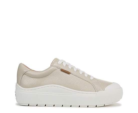 Dr. Scholls Time Off Womens Sneaker - Champagne Plan your travels easier with the comfy Time Off womens Sneaker from Dr. Scholls. With a water-resistant faux leather upper featuring an anatomical insole with a cap toe for retro-inspired style, these lace-up Sneakersalso have a extra EVA cushioning. The anti-microbial/anti-odor Insole Technology offers arch support, while the platform keeps you lifted in style. Synthetic upper Lace-up closure Water-resistant Insole Technology 1 platform sole