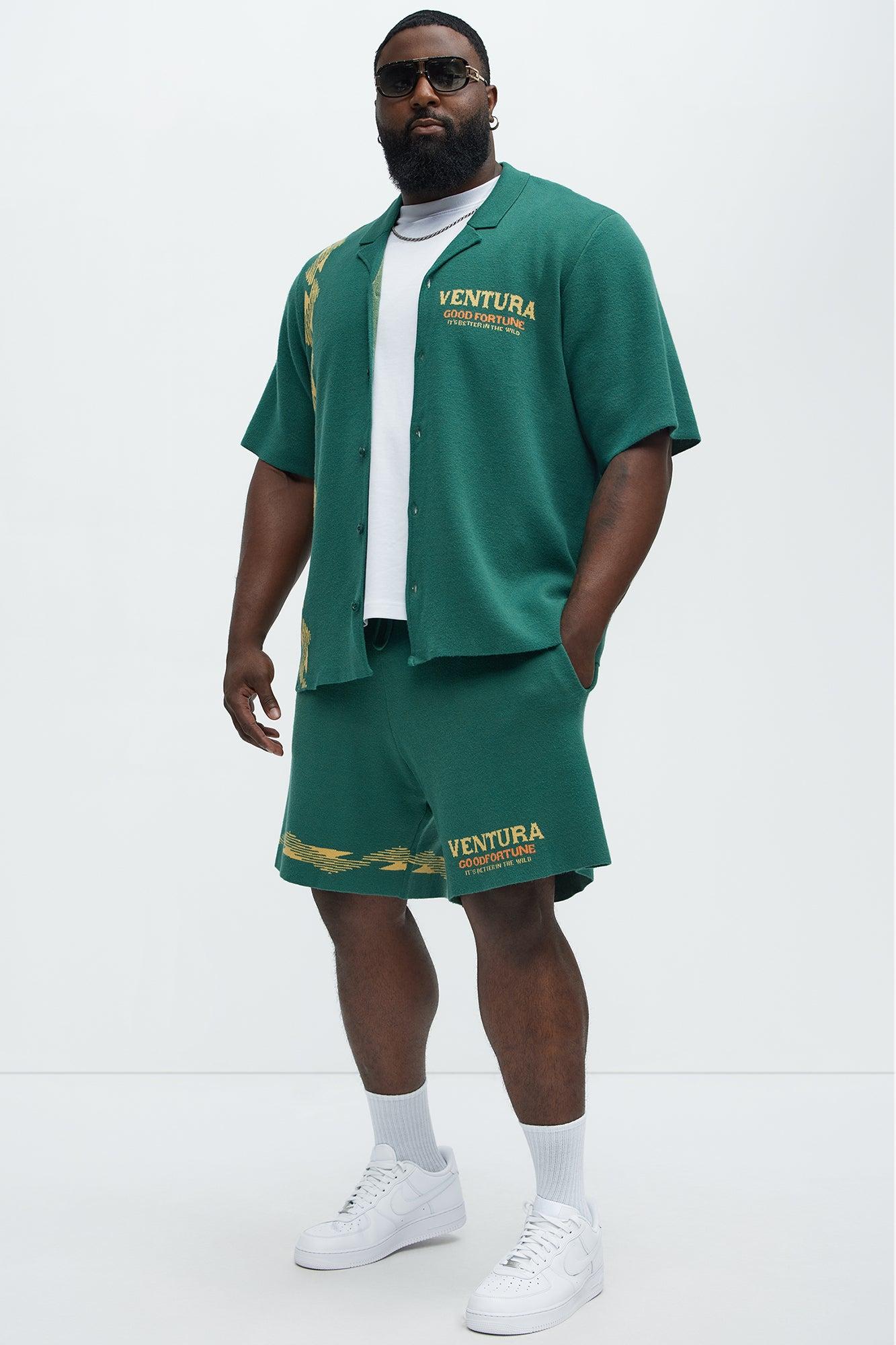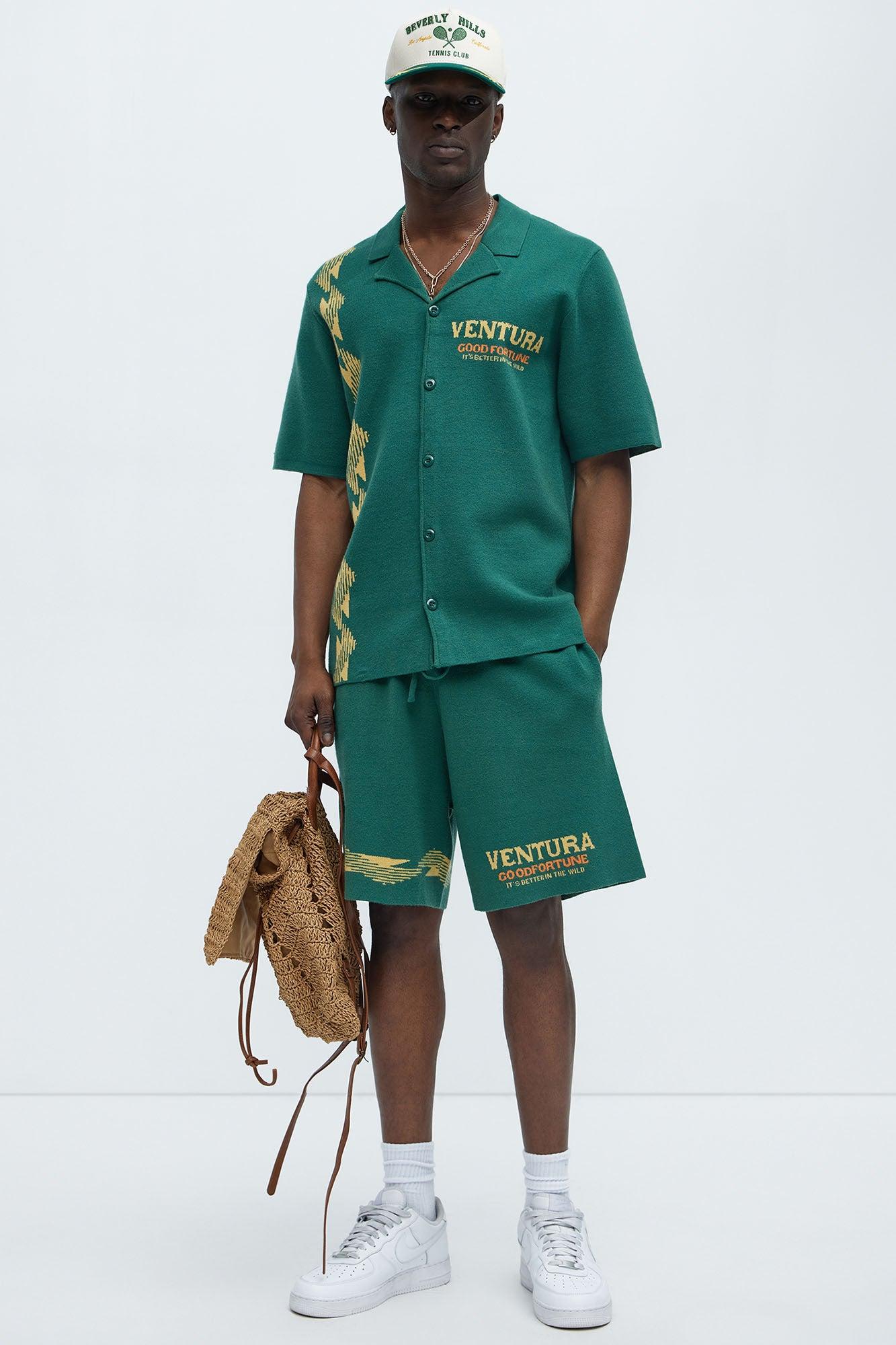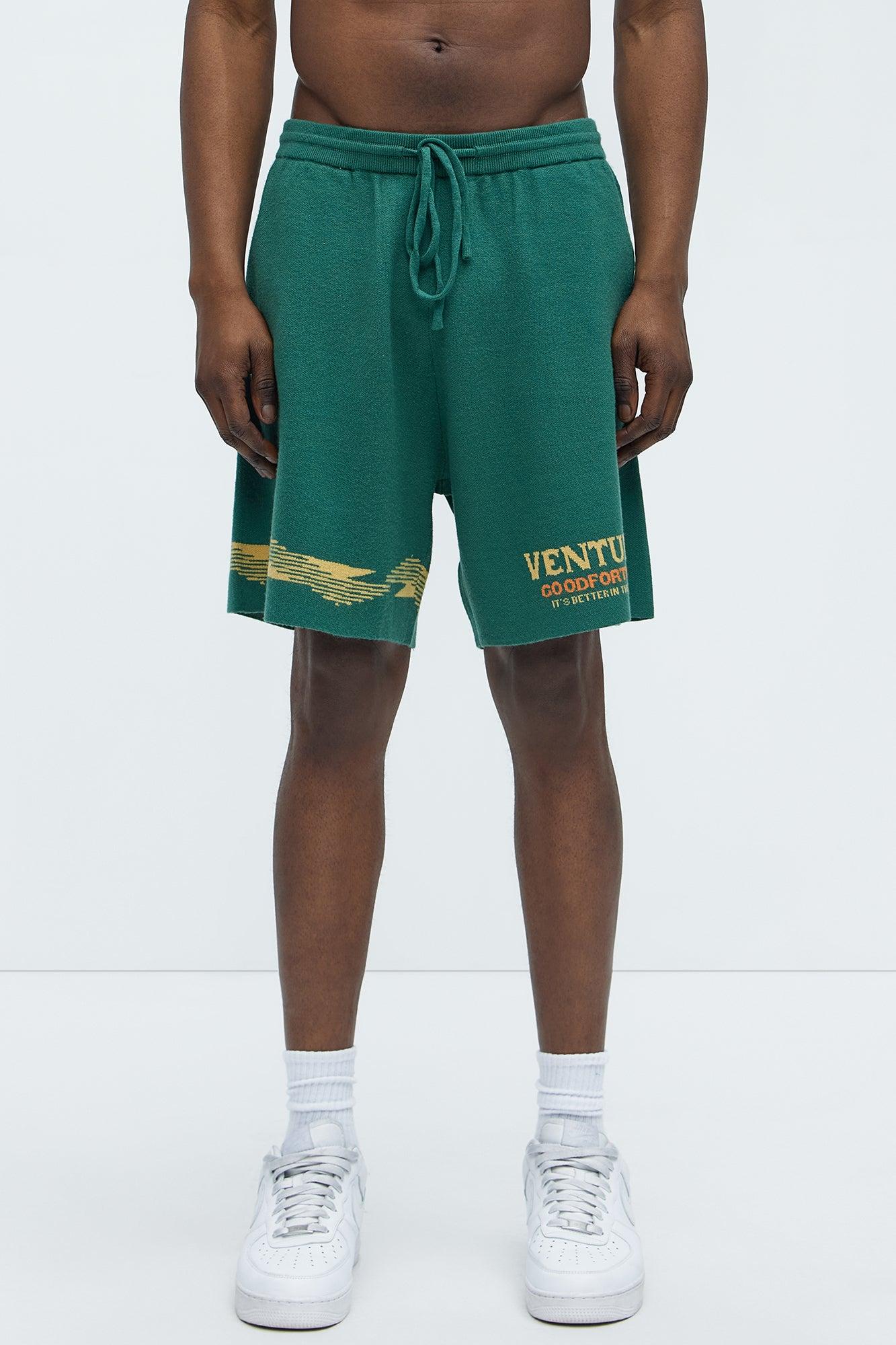 Dragon Palm Knitted Relaxed Shorts - Green/combo