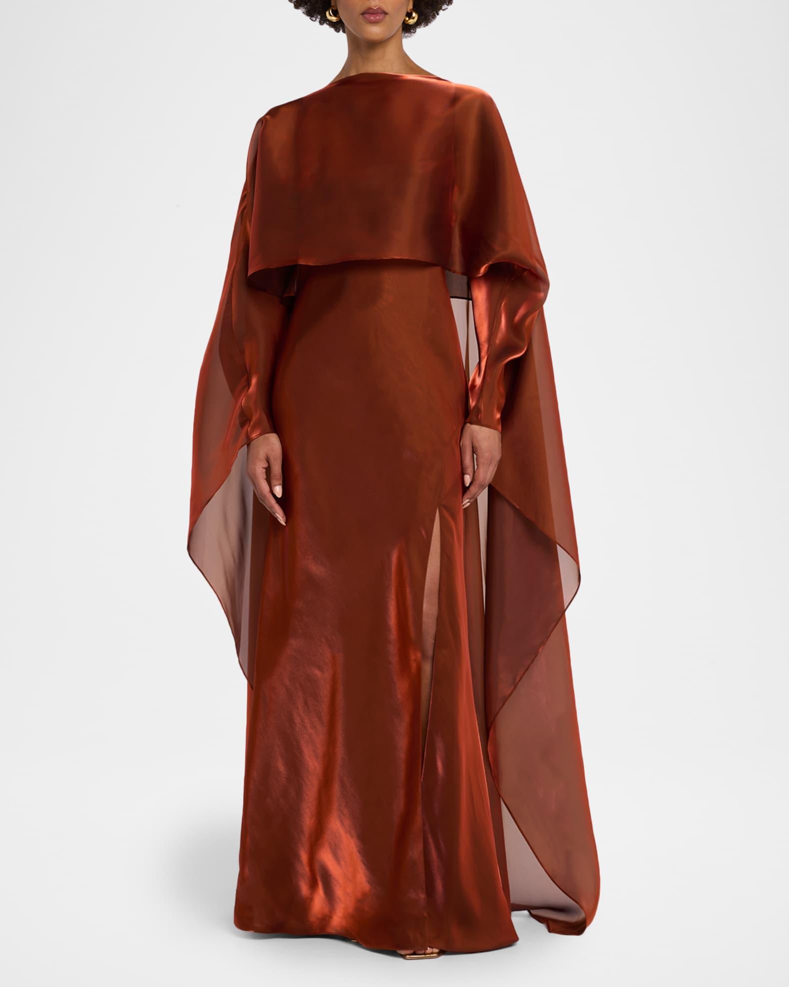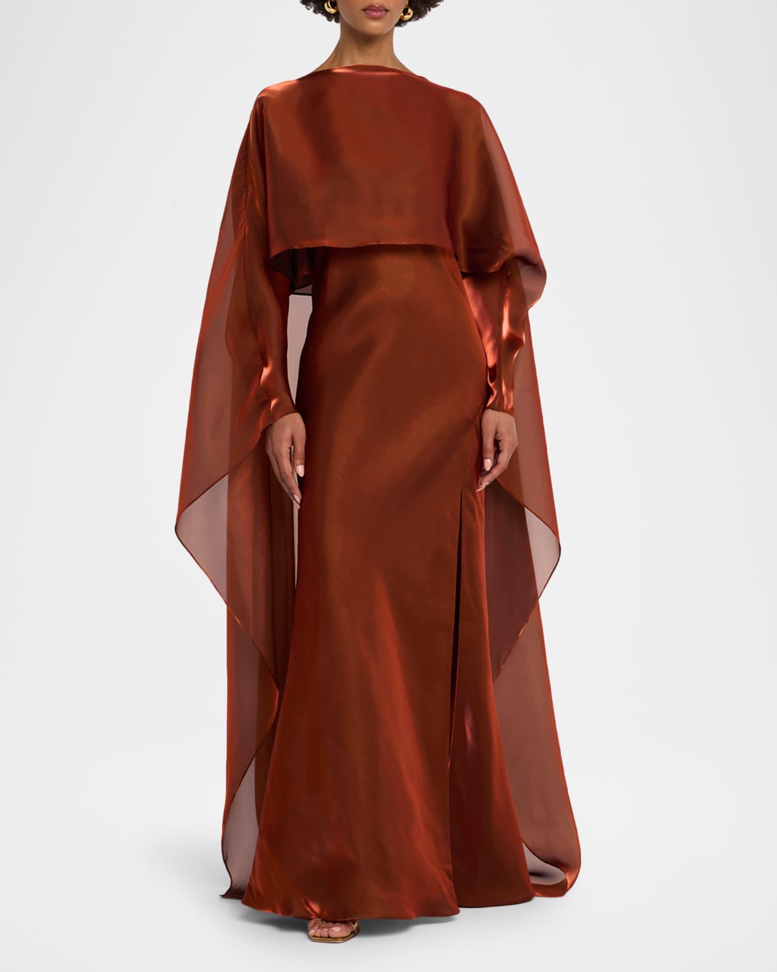 Draped Metallic Organza Cape Gown