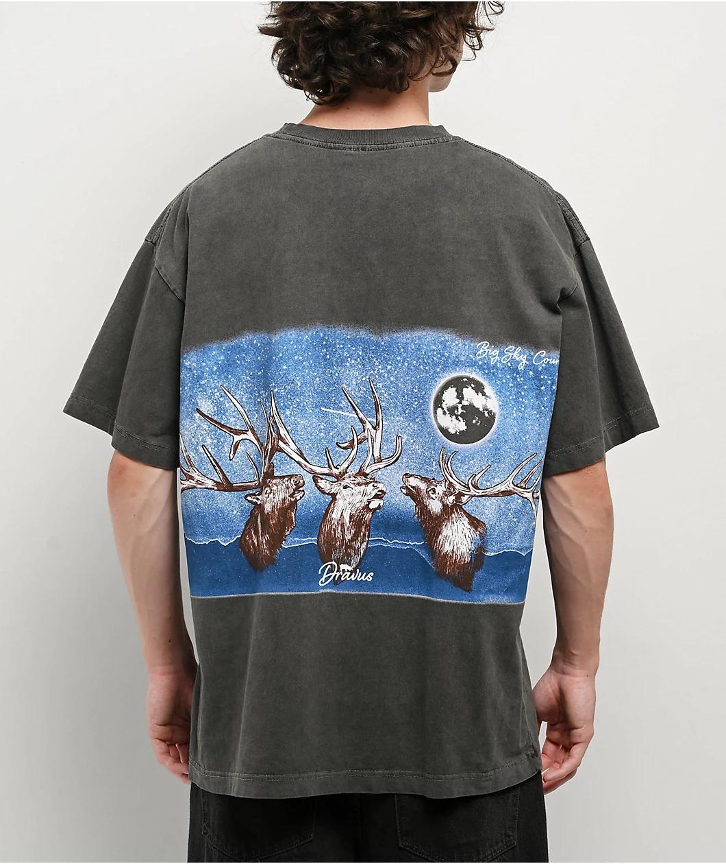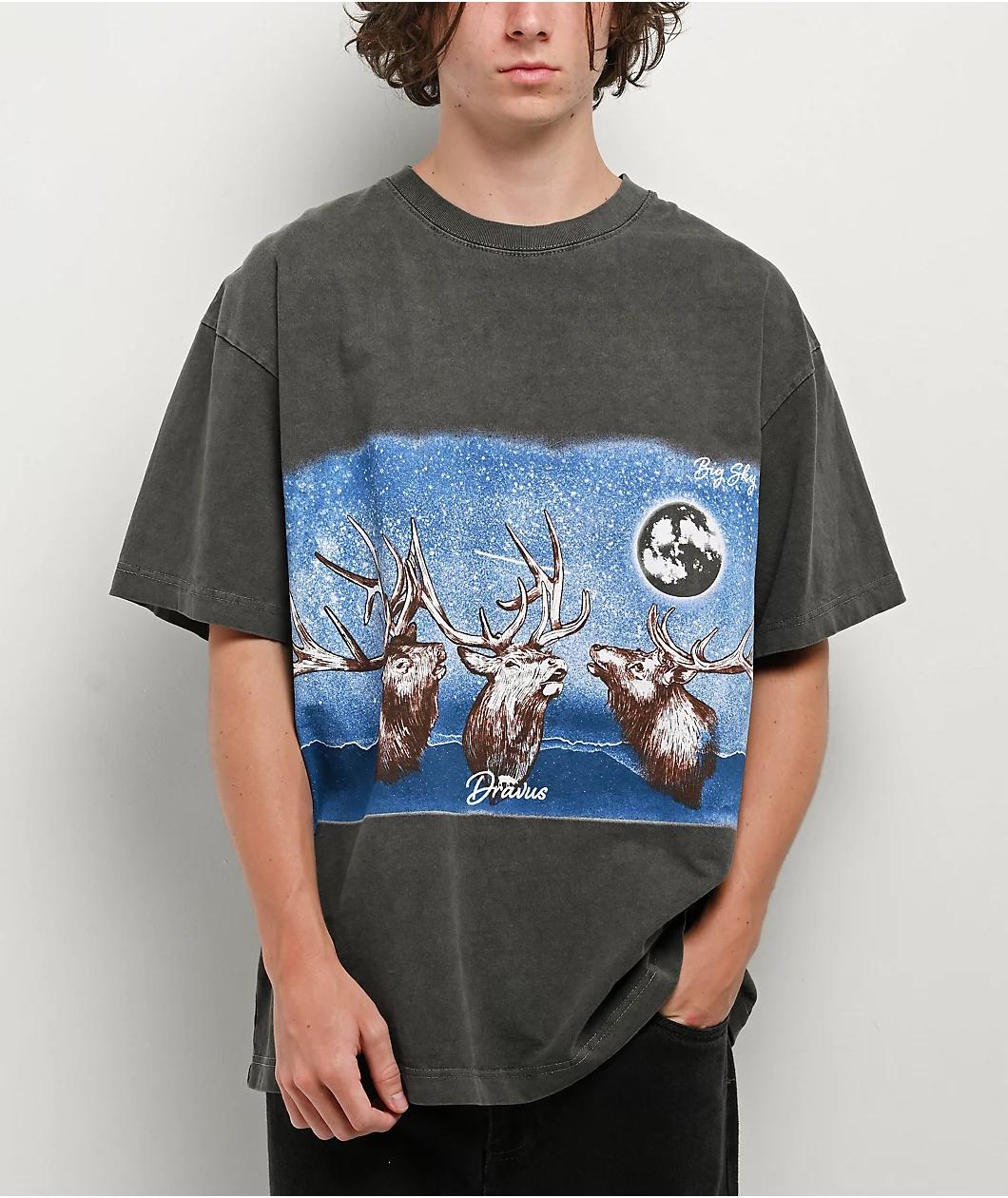 Dravus sets the scene with the 100 Acre Wood grey t-shirt, featuring a dreamy night sky graphic on the front and back of three majestic elk beneath a full moon. The soft cotton build and ribbed crew neck make it an easy go-to for all adventures.