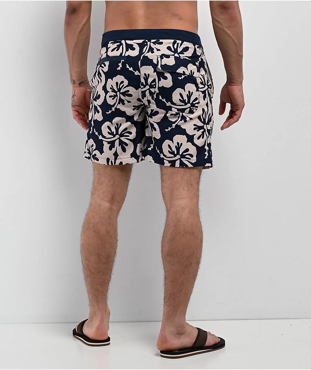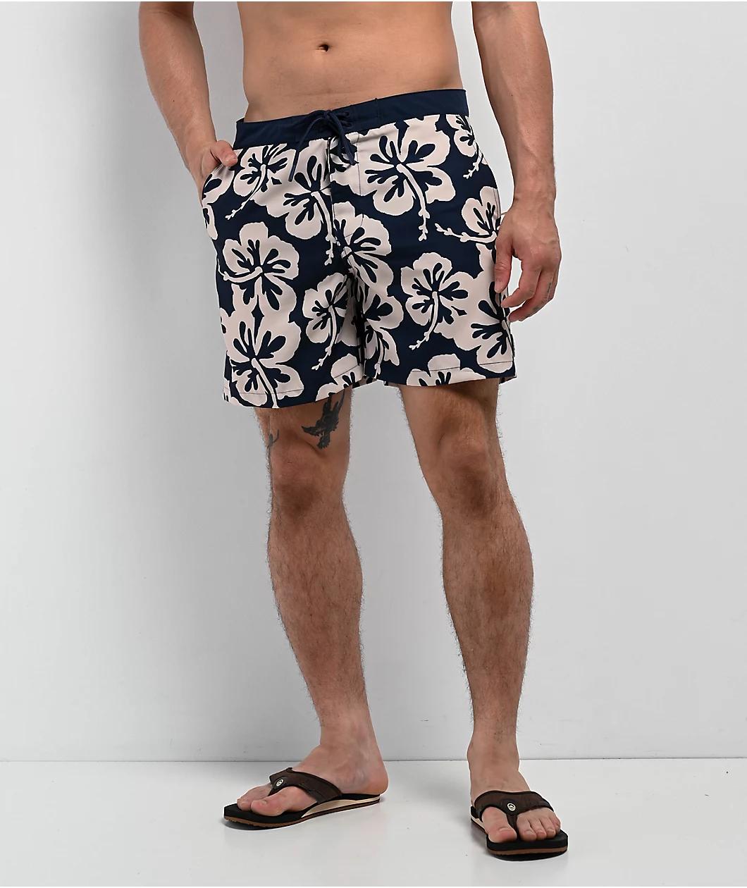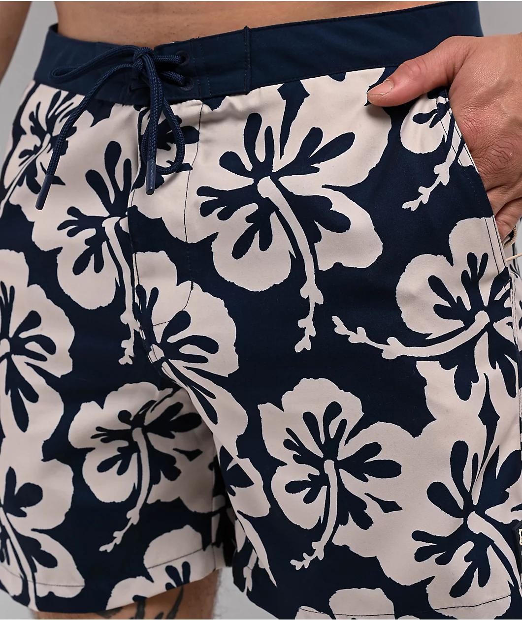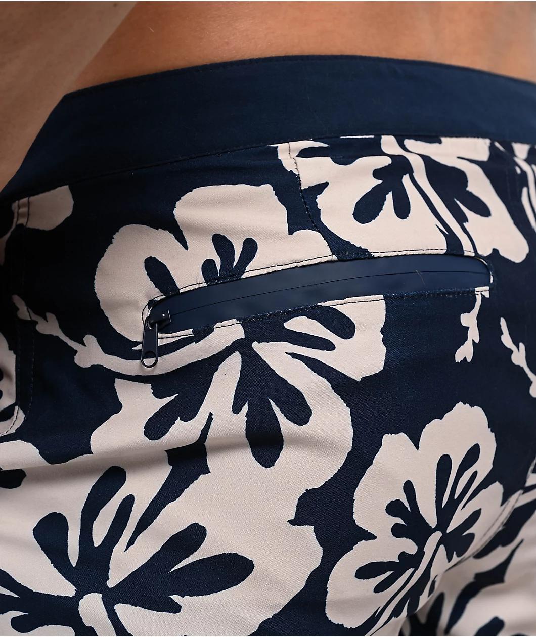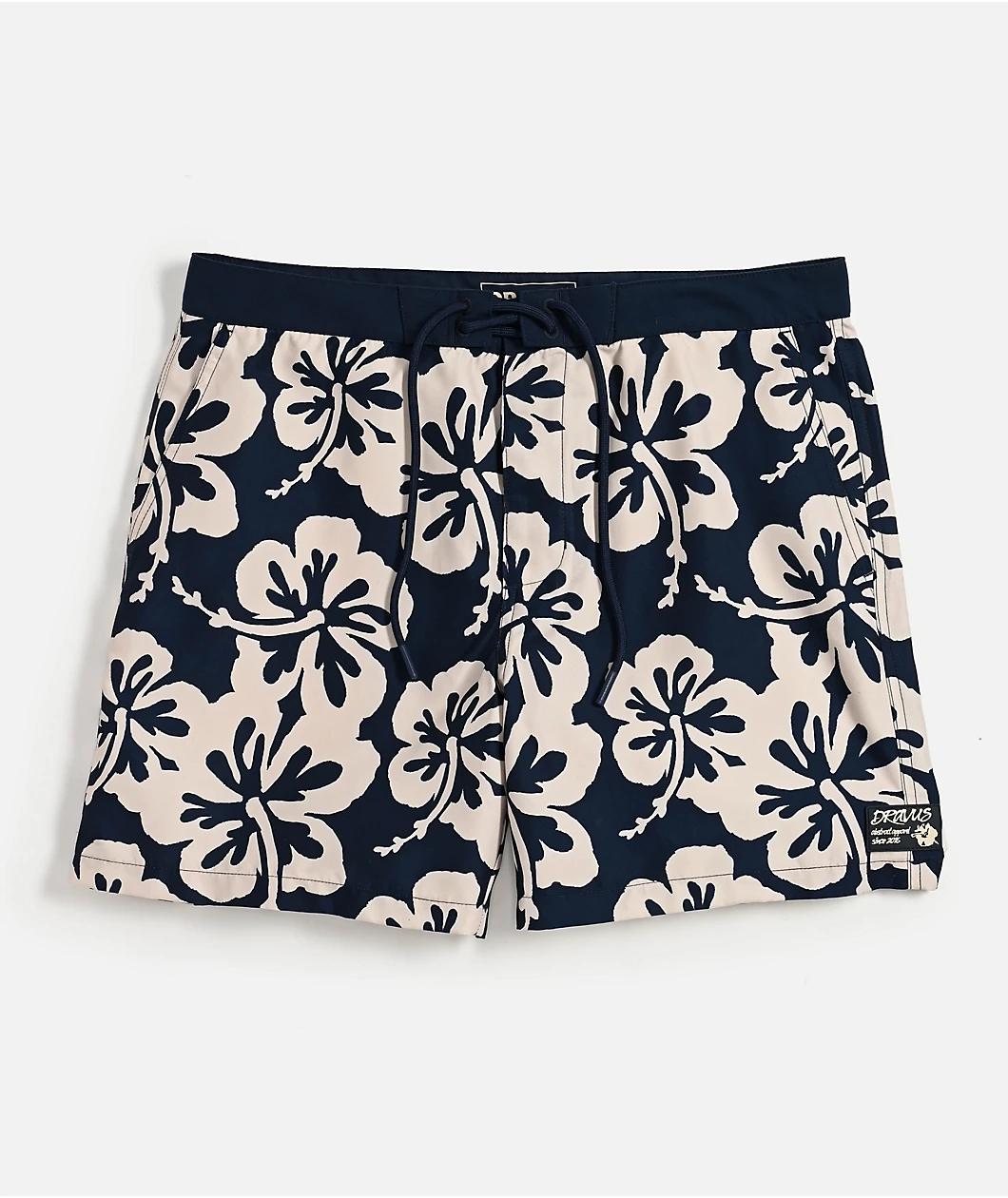 Hit the water in the Drift board shorts from Dravus, available in a navy blue floral pattern. Made from 100% recycled polyester, the lightweight swimwear features two hand pockets with zip closure while the solo right seat pocket employs a hook-and-l