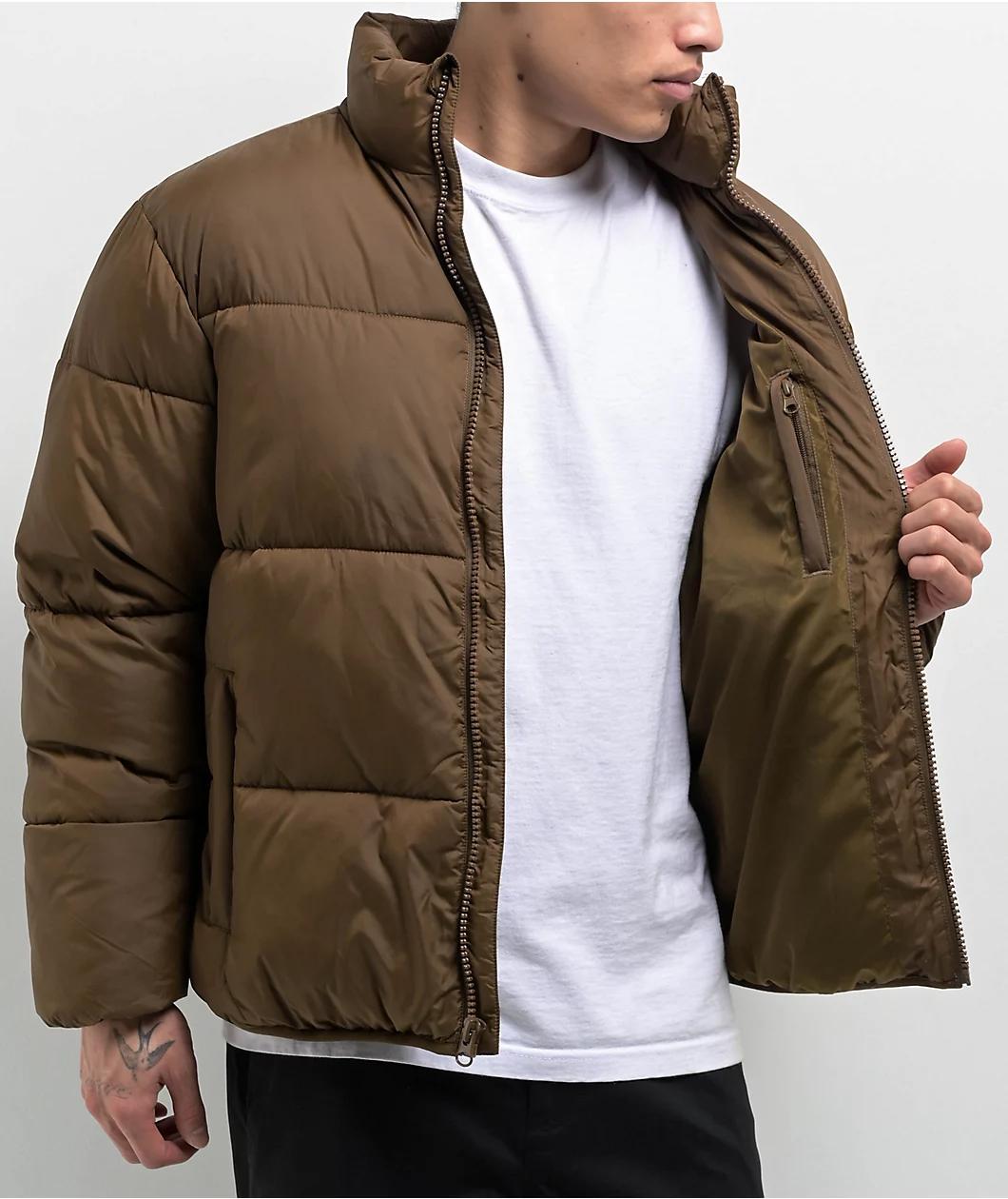 Prepare for cold weather with the brown Frostbound puffer jacket from Dravus. The warm coat uses a quilted construction to keep hot air in and cold air out, ensuring the utmost comfort even in winter. Three pockets, including a chest pocket and dual