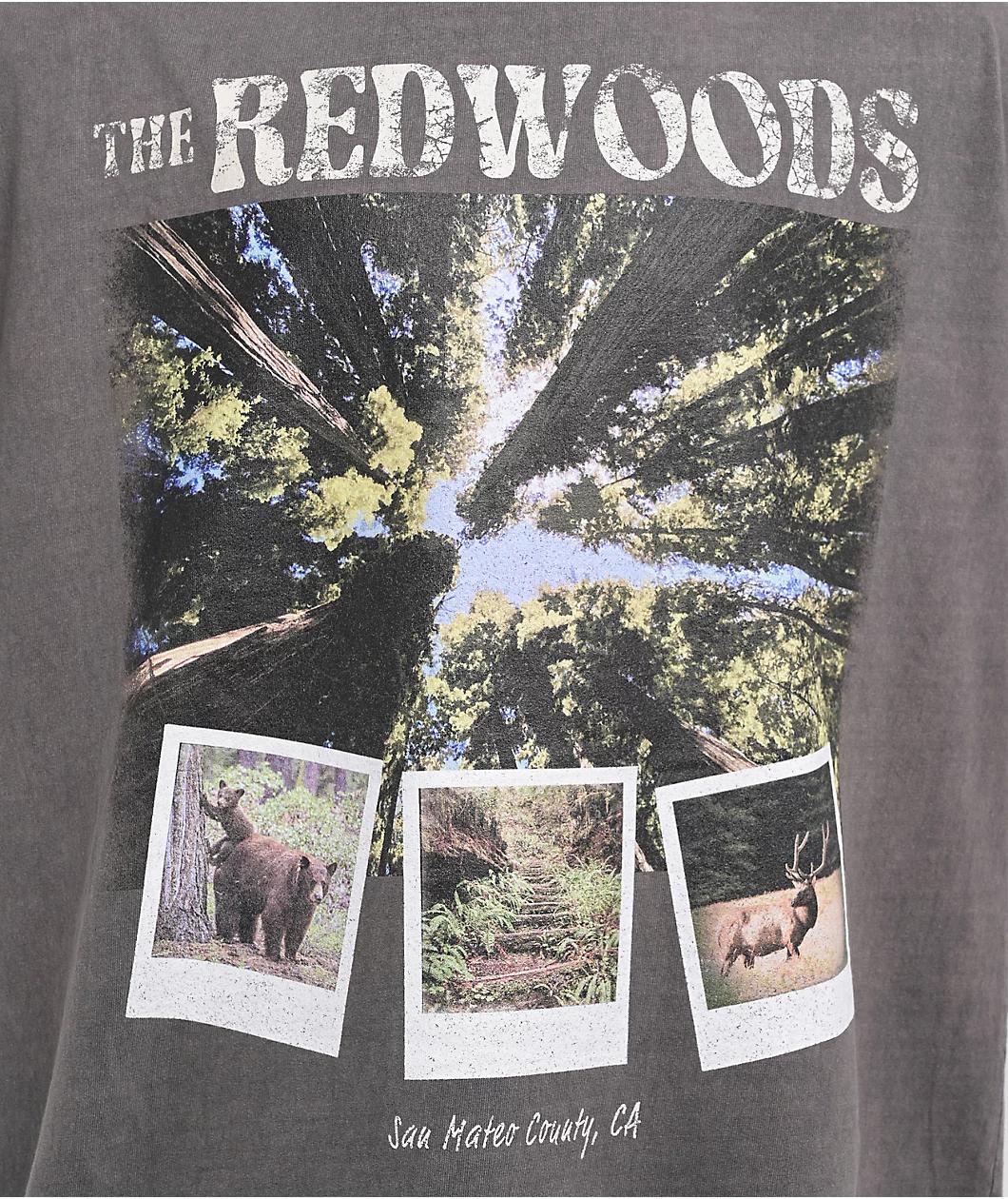 Add an outdoorsy touch to your outfit with the Redwoods t-shirt from Dravus in a vintage-inspired charcoal colorway. Printed on the front of the tee are four images of landscape you will find at the Redwood Forest in San Mateo County, CA. This shirt
