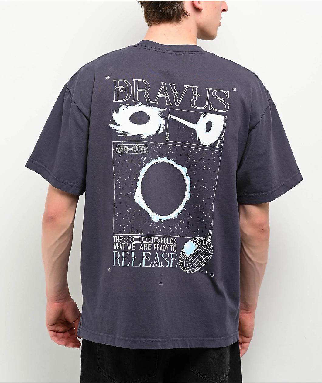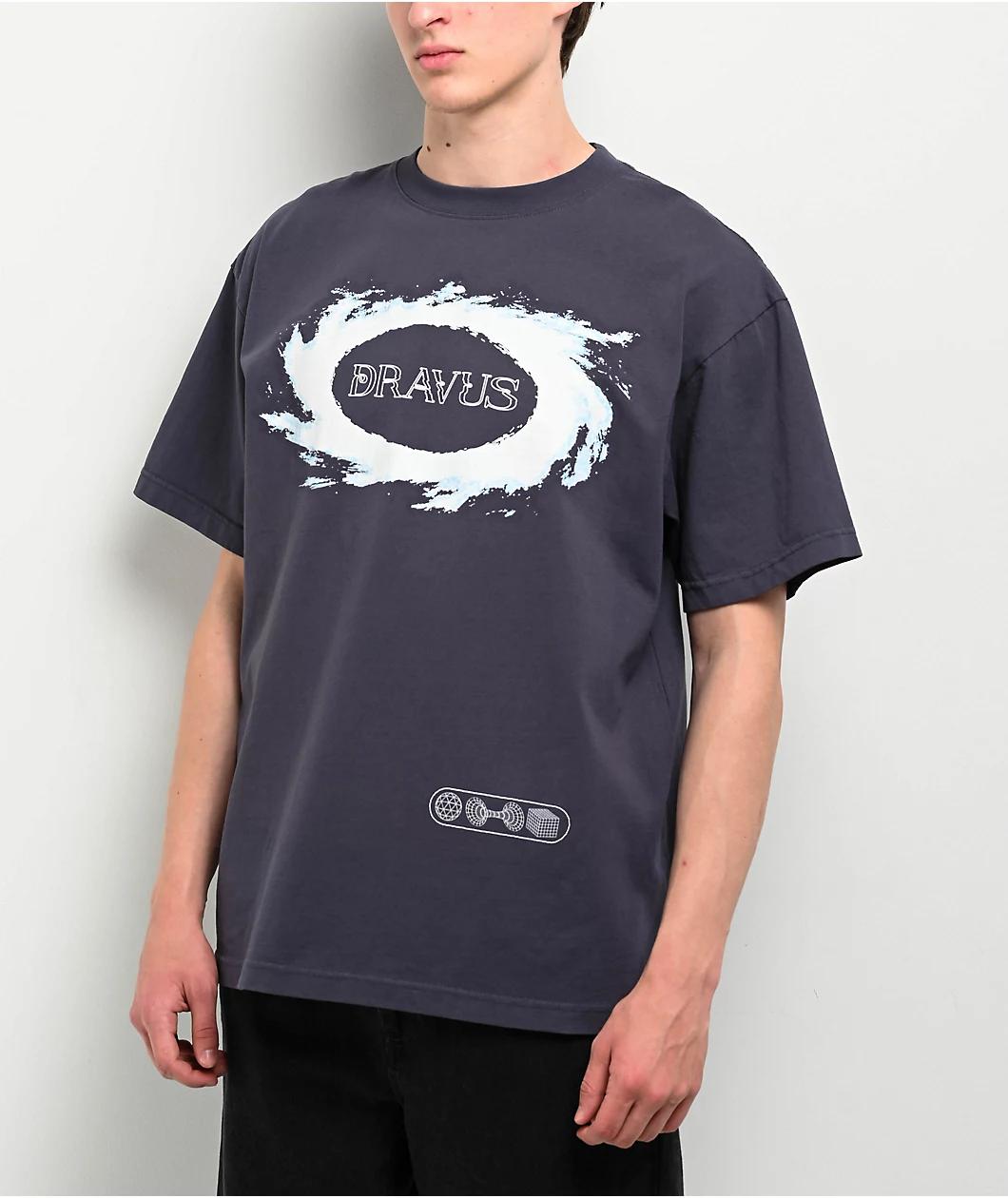 Add a natural yet sci-fi vibe to any outfit with the Release t-shirt from Dravus. The navy blue tee features wormhole graphics on the front and back alongside white branding for a streetwear look. The printed neck label provides a no-itch feel.