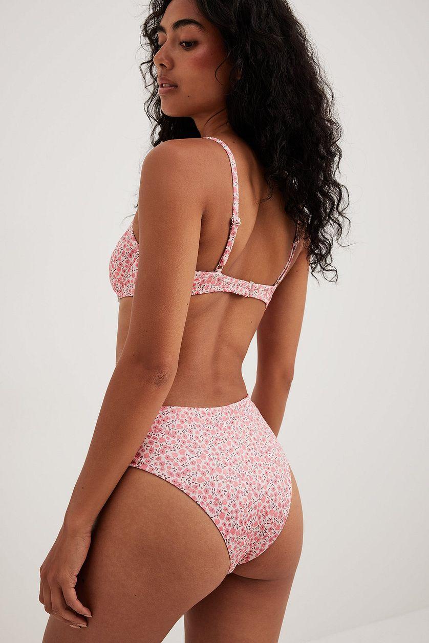 This bikini panty features a high waist. It has drawstrings on the sides.
