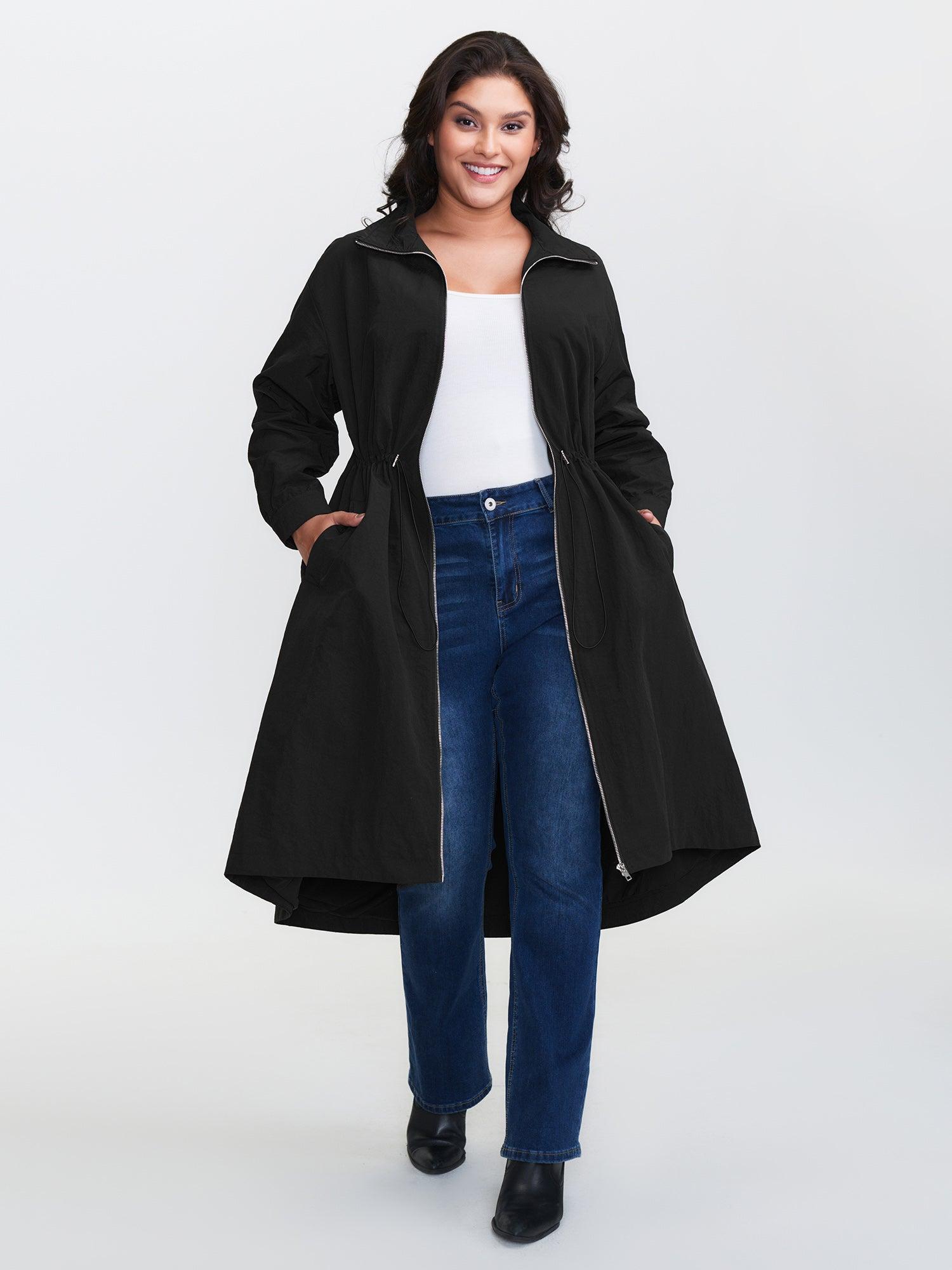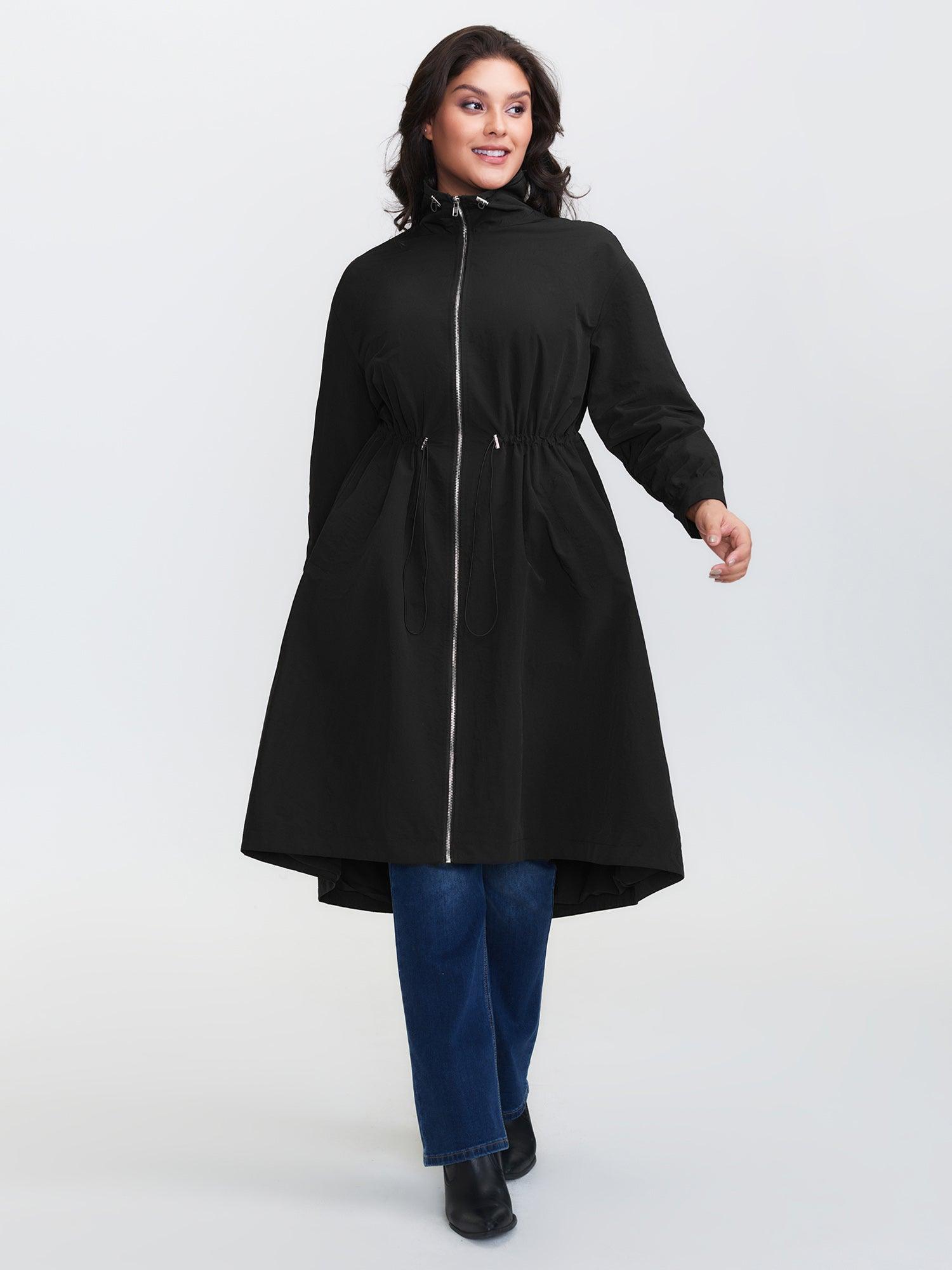 Shop Drawstring Pockets Zipper Long Coat now and redefine your style with confidence at BloomChic. Tailored for mid and plus-size women. This trendy Outerwear Women, sizes 10-30. Color:Black;Style:Leisure;Prints:Non;Details:Drawstring, Texture;Pocket:Slanted pocket;Belt:No-belt;Closure Type:Zipper;Lining:Lining