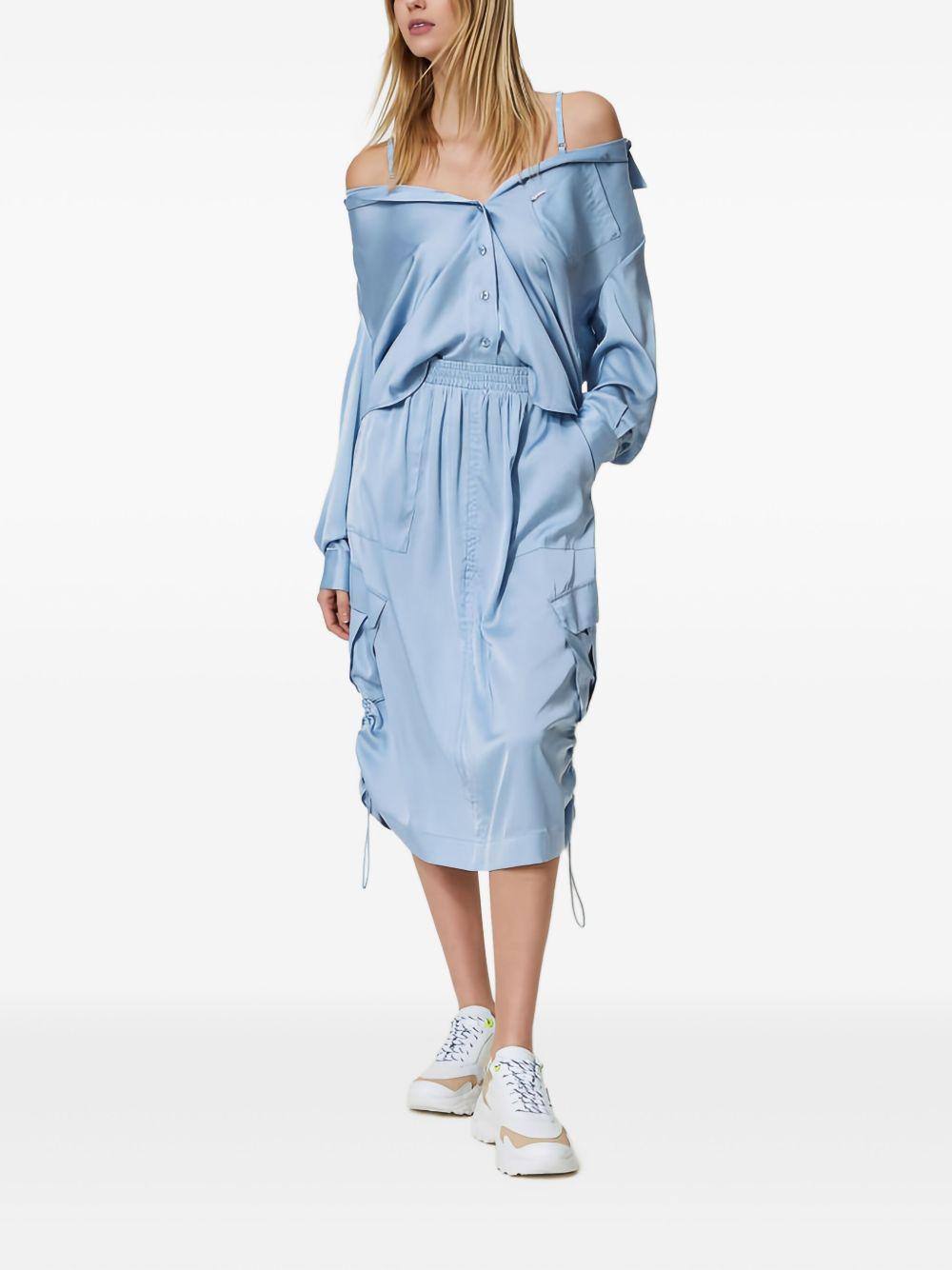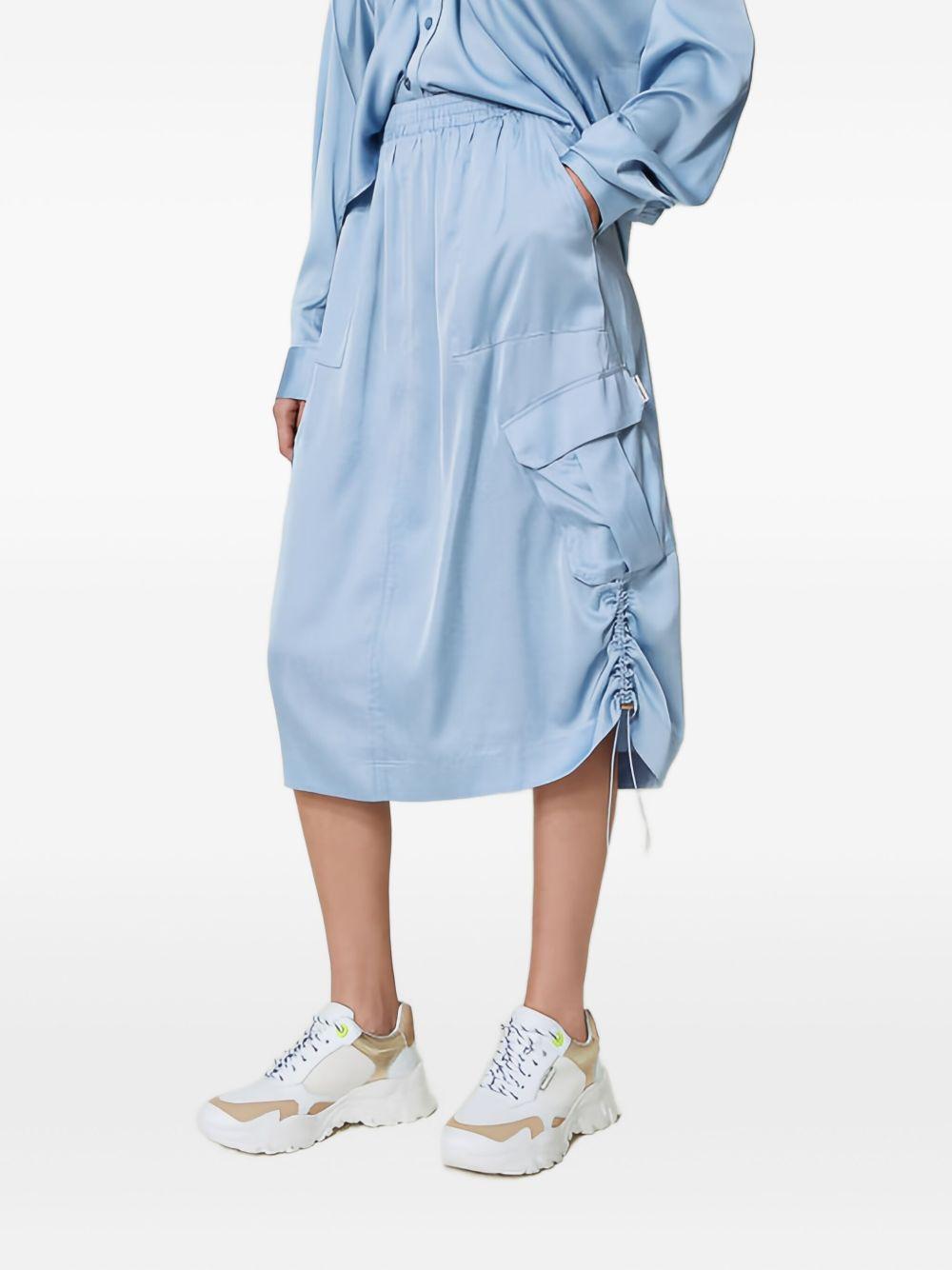 TWINSET drawstring-sides midi skirt | Blue | periwinkle | elasticated waistband | side pockets | drawstring detail | Polyester/Spandex/Elastane | A-Line Skirts | Skirts | Clothing | Women