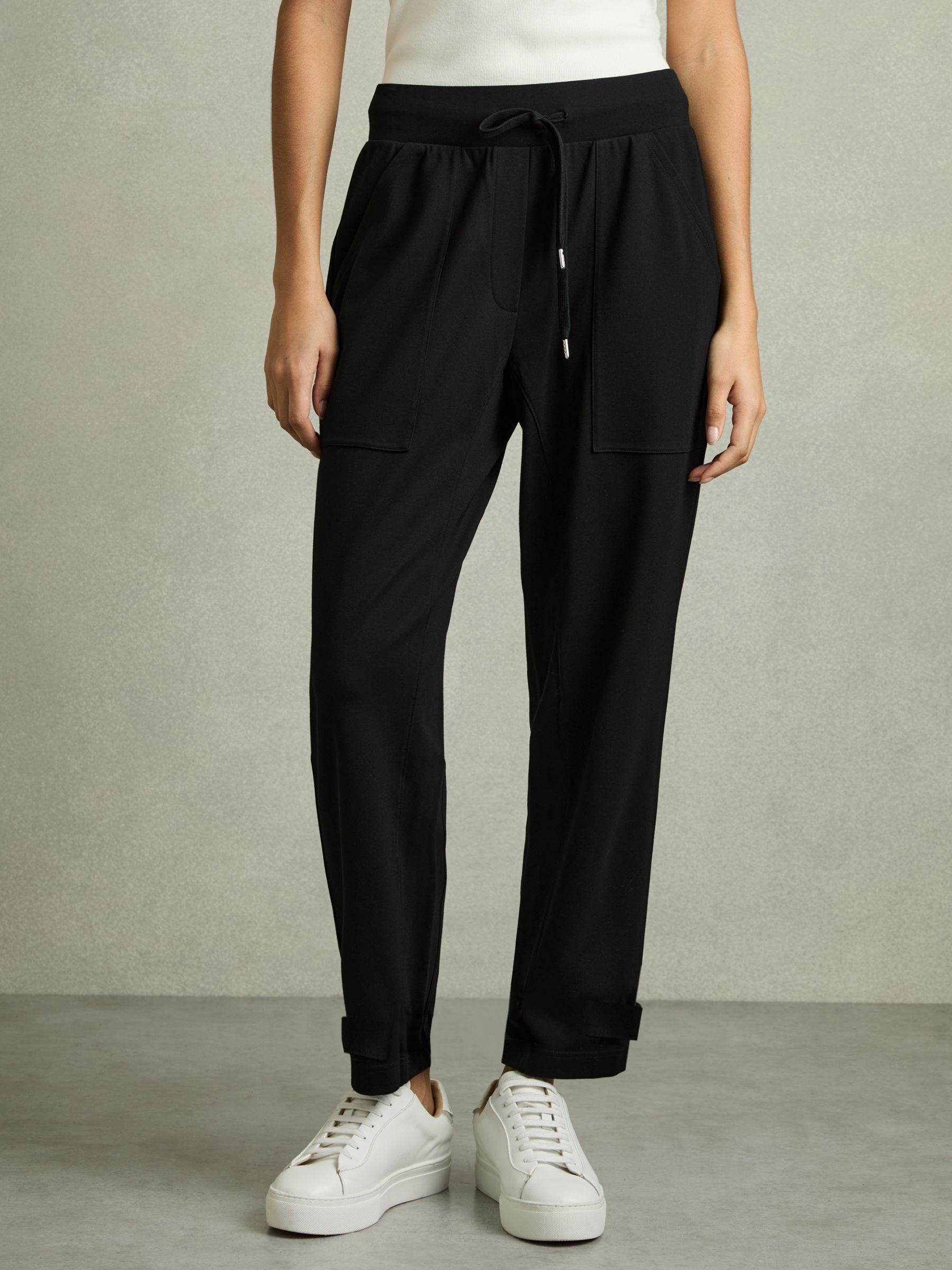 The Alexi tapered joggers are crafted from soft, stretchy jersey fabric for comfort and flexibility. The drawstring waistband offers an adjustable fit, while button-tab cuffs gently cinch at the ankle, enhancing the tapered leg. Jersey fabrication. Drawstring waistband. Button-tab cuffs. Side slip pockets. Tapered leg.