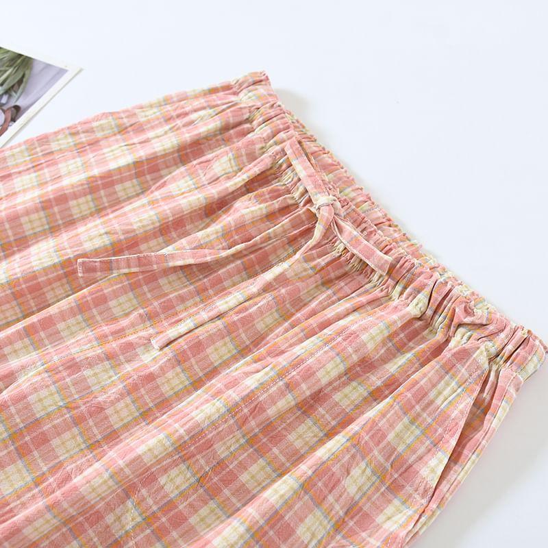 Drawstring Waist Plaid Lounge Pants