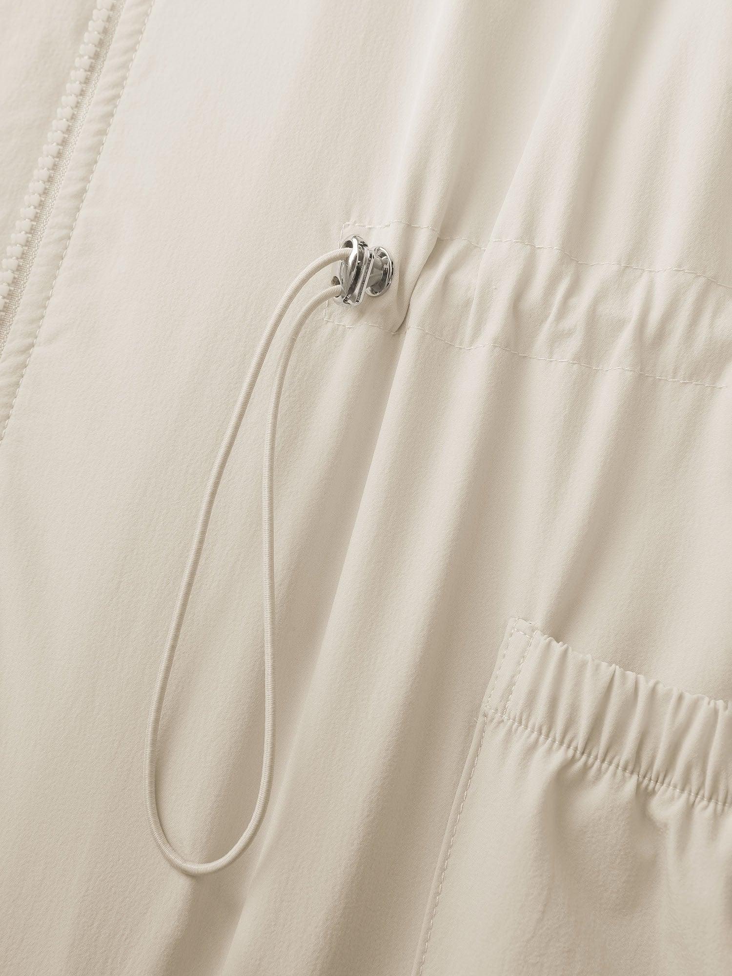 Drawstring Waist Pockets Hooded Coat Female