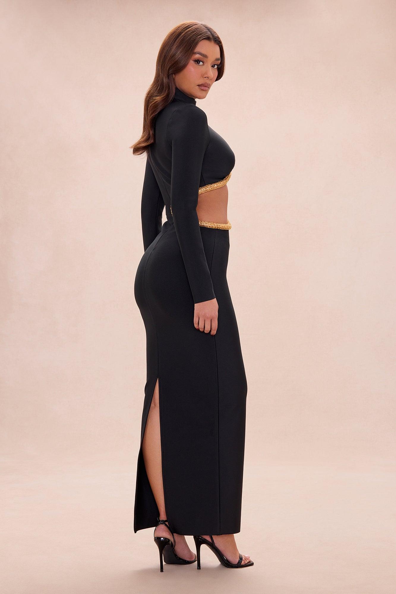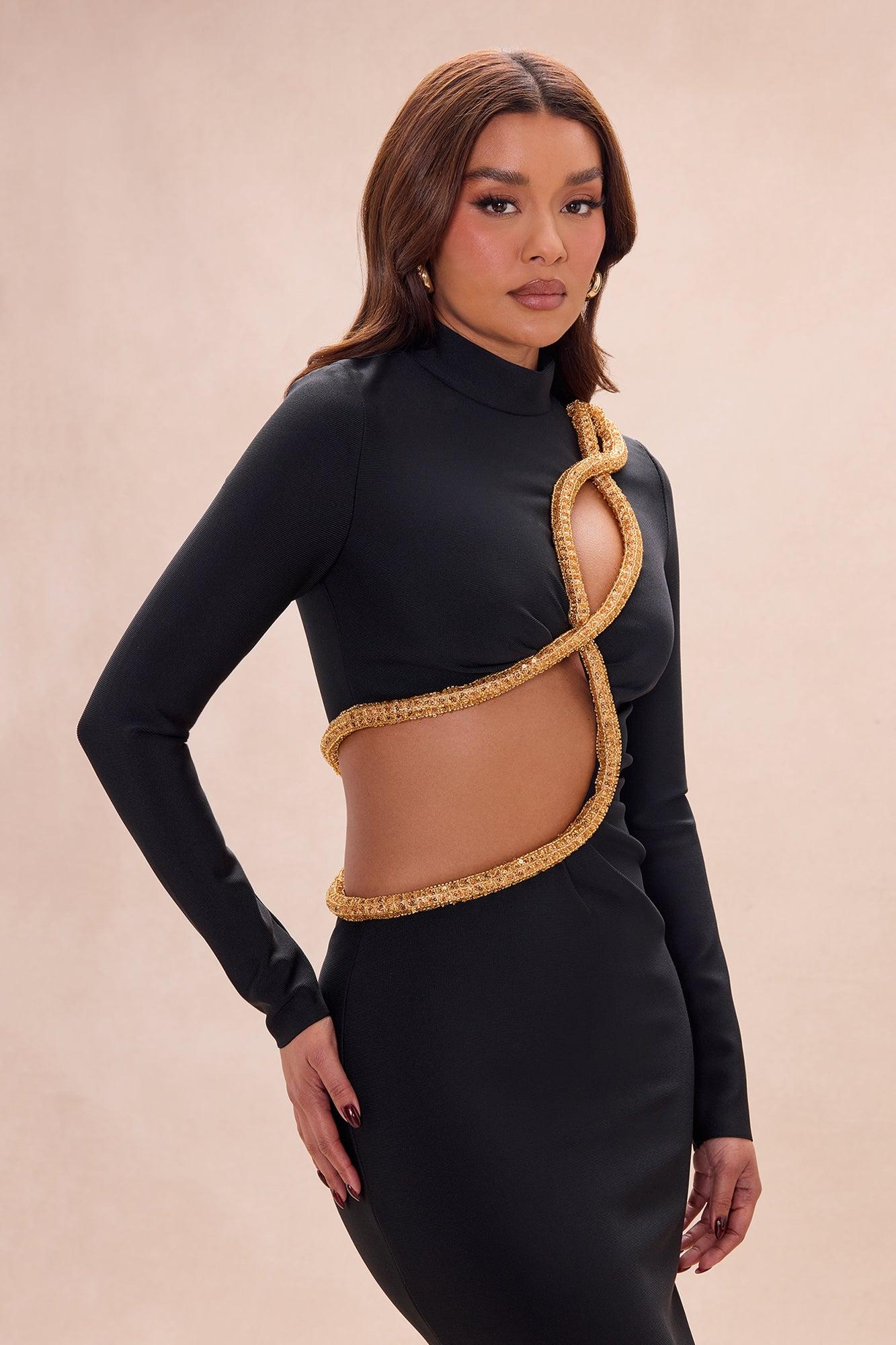 Draya Embellished Long Sleeve Bandage Maxi Dress - Black Female