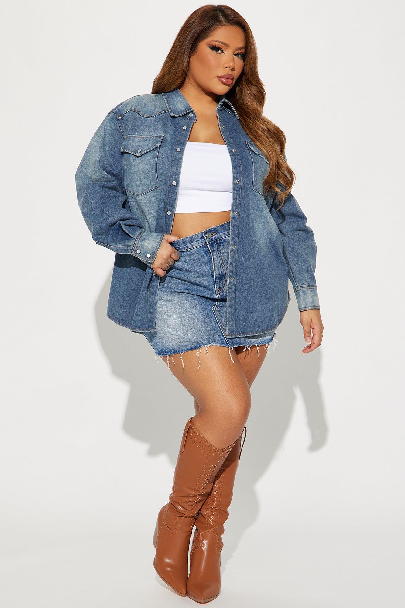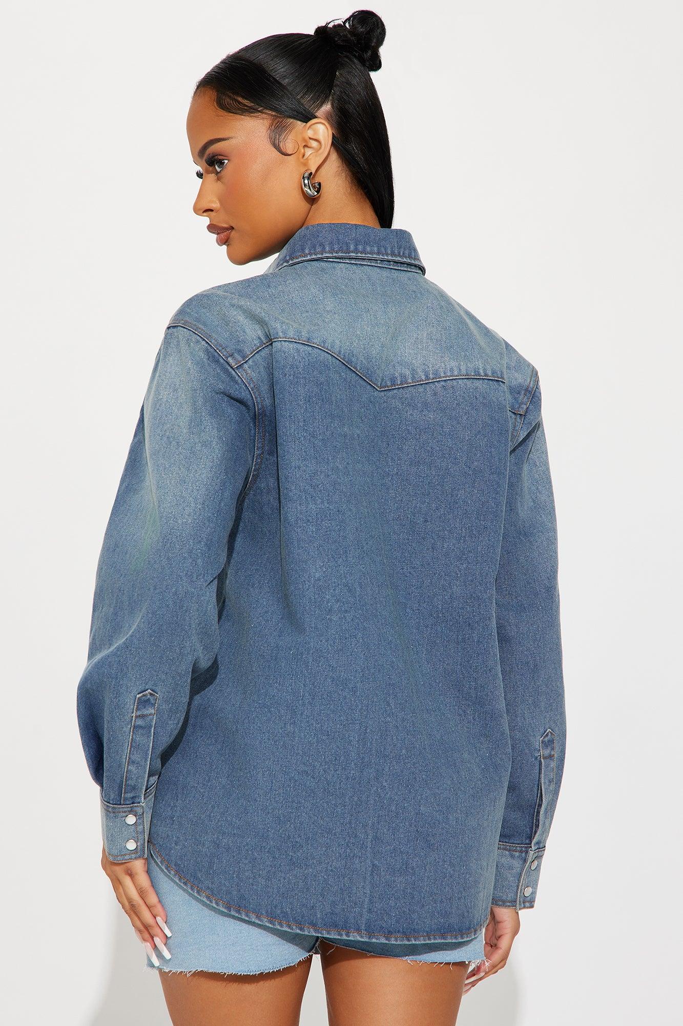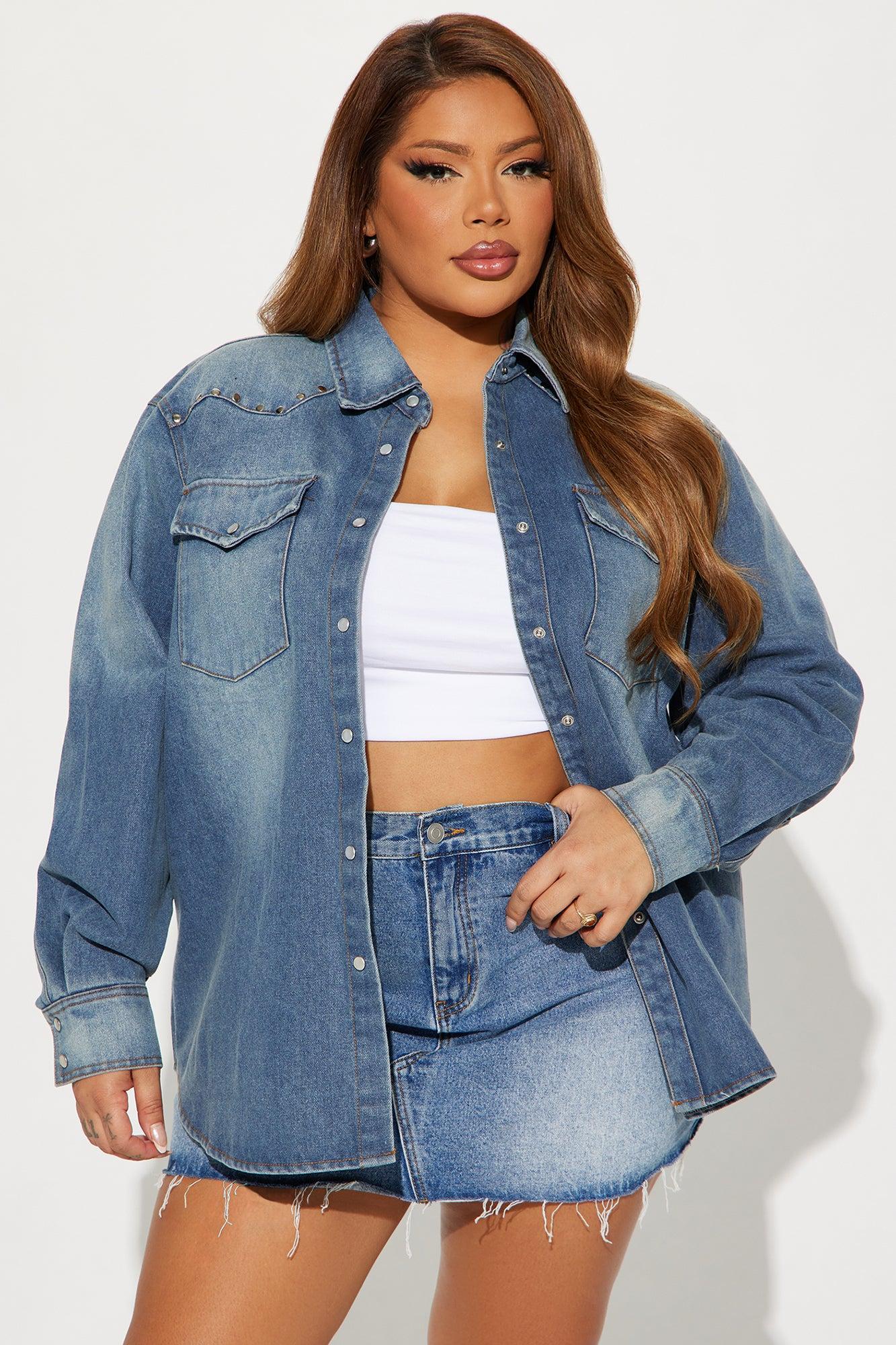 Available In Medium Wash. Denim Shirt Long Sleeve Button Down Collar 2 Front Pockets Studded Detail Non Stretch Disclaimer: Due To The Specialized Wash Process, Each Garment Is Unique Self: 75% Cotton 25% Polyester Imported California Proposition 65 WARNING: Cancer and Reproductive Harm - www.P65Warnings.ca.gov.