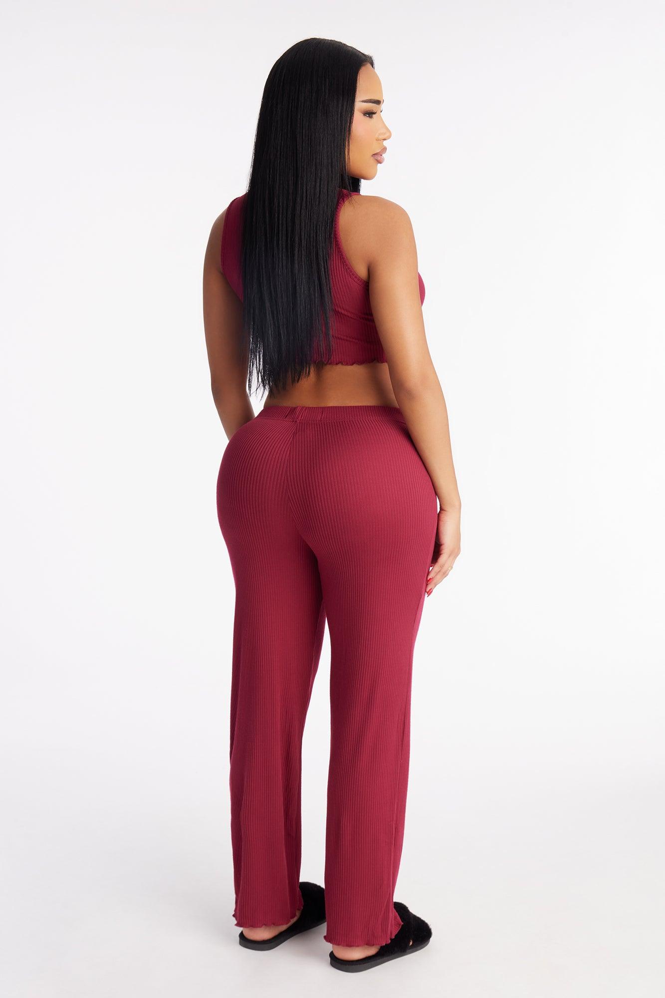 Dream Tonight Ribbed Tank PJ Pant Set - Burgundy Female