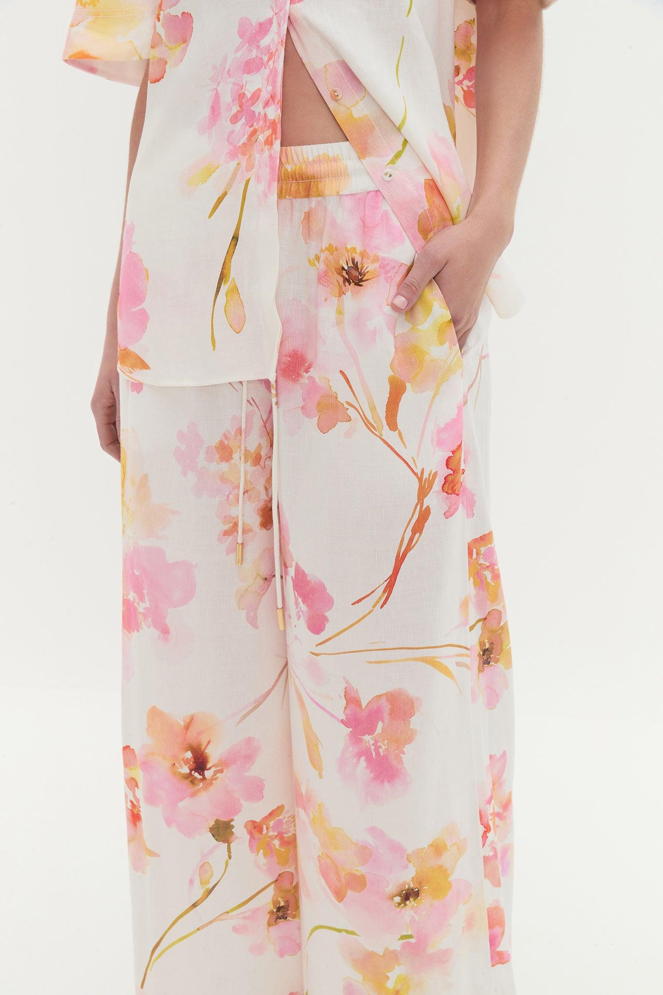 PRODUCT DETAILS Women's wide-leg pants Front zip fly with feature button Twin belt loops Stretch back waistband Tuck details Side pockets 55% Linen, 45% Viscose Dry Clean Only Shop All Pants SIZE AND FIT Model wears a size AU 8/S Height: 177cm/5'10 Bust: 82cm Waist: 63m Hips: 86cm