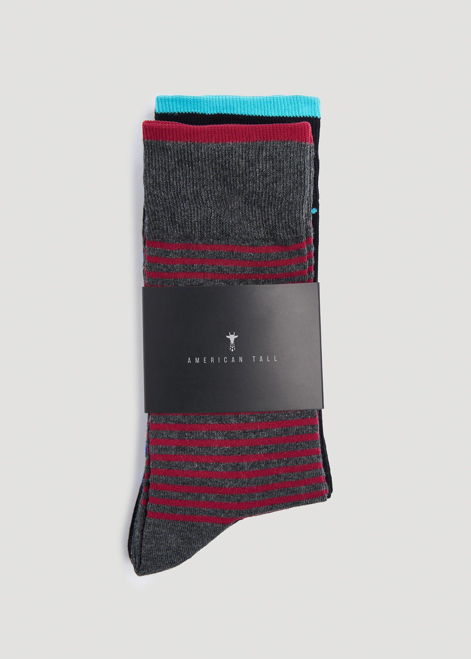 ‘Head practically in the clouds? Let your feet feel some of that love, like you’re walking on air… Check out American Tall’s newest creations - our men's XL dress socks. These XL dress socks are size 14-17, fitted for guys who cast a long shadow. Whether you're slim and tall or big and tall, our men's XL dress socks will get the job done and have your big feet looking great in your big shoes. For hygienic reasons, socks are FINAL SALE. 70% cotton / 20% polyester / 5% nylon / 5% spandex Men's socks size 14 to men's sock size 17 Machine wash Pack contains 3-pairs of extra large men's socks All tall men's socks are final sale
