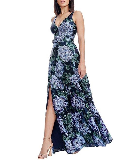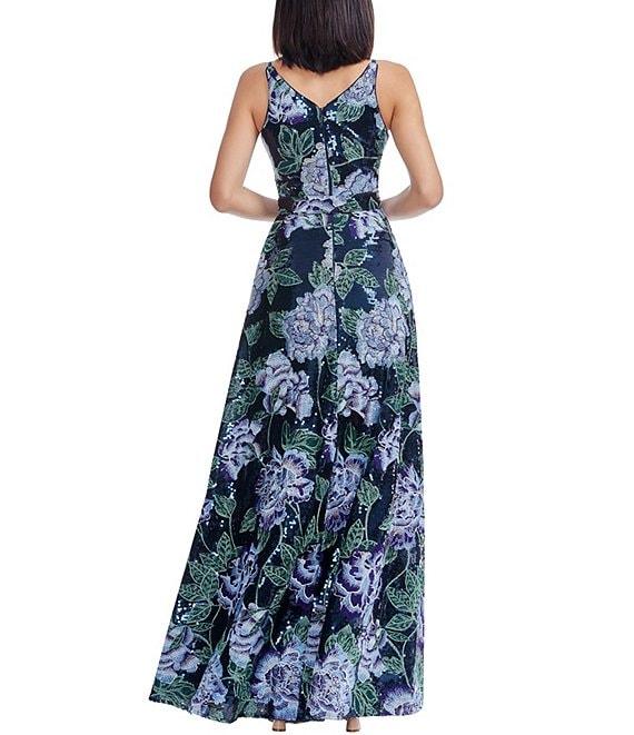 Dress the Population Alyssa V-Neck Sleeveless Floral Embroidered Sequin A-Line Gown