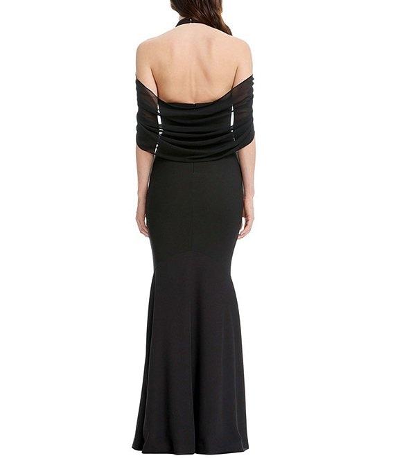 Dress the Population Aviva Stretch Crepe Capelet Mermaid Gown