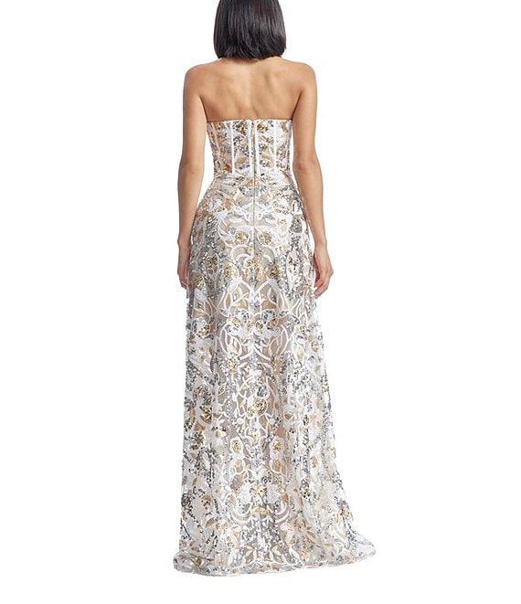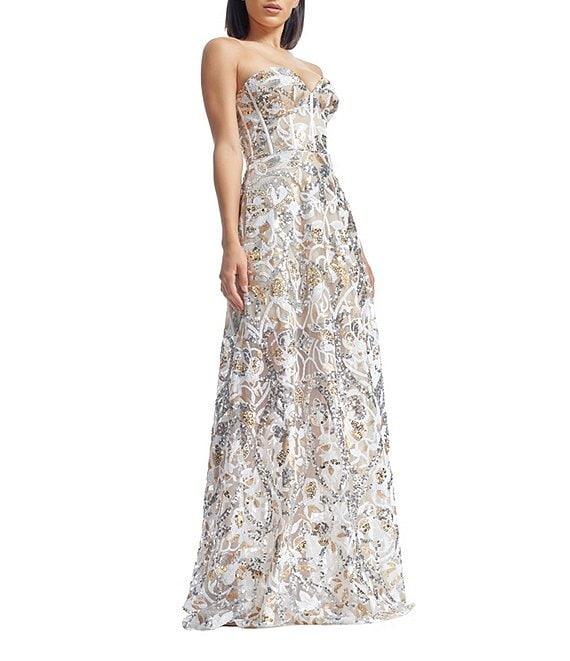 Dress the Population Daven Sweetheart Strapless Embroidered Mesh Corset A-Line Gown