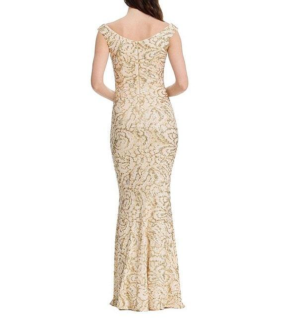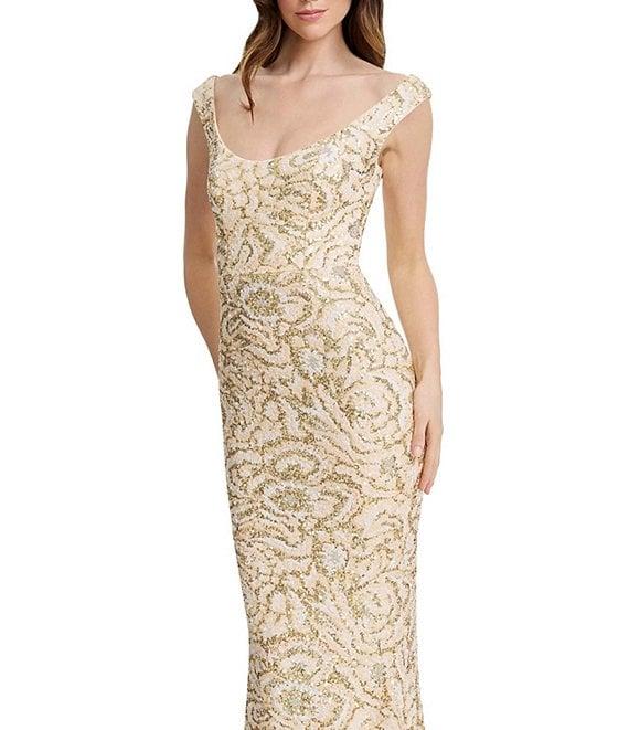 From Dress the Population, this dress features: Sequin fabrication Sheath silhouette Scoop neckline Sleeveless Lined Zip back closure Approx. 60.5" length Polyester/Spandex Dry clean Imported.