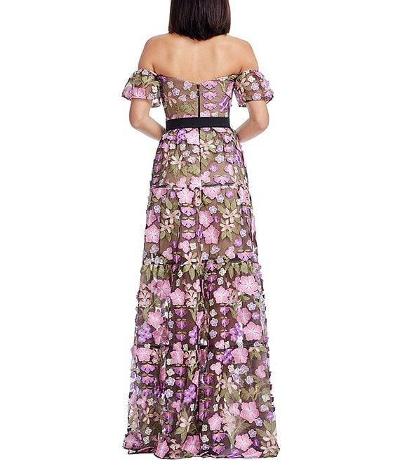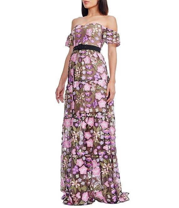 Dress the Population Lara Off The Shoulder Floral Embroidered Gown