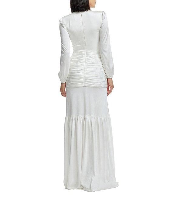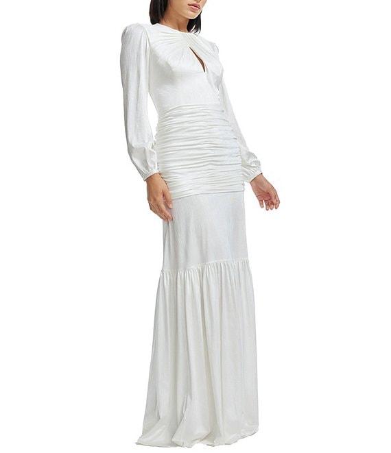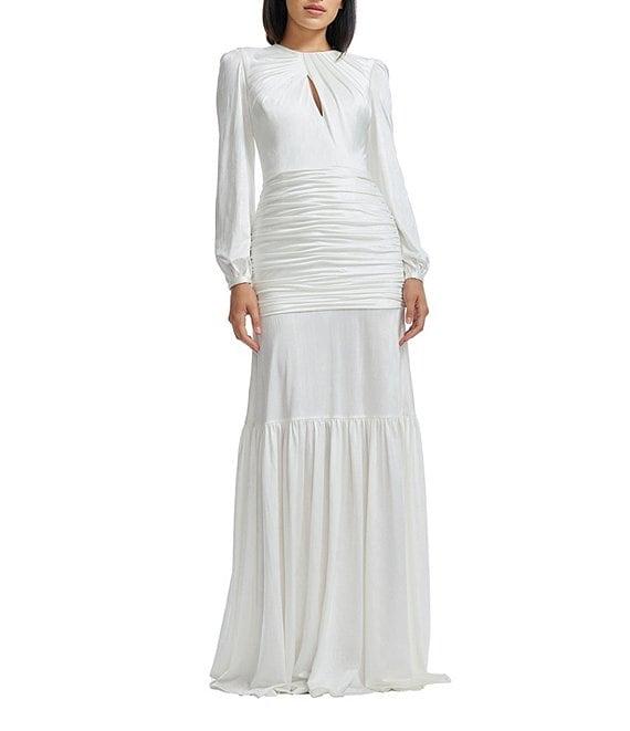 Dress the Population Lucille Keyhole Neck Long Sleeve Ruched Sheath Gown