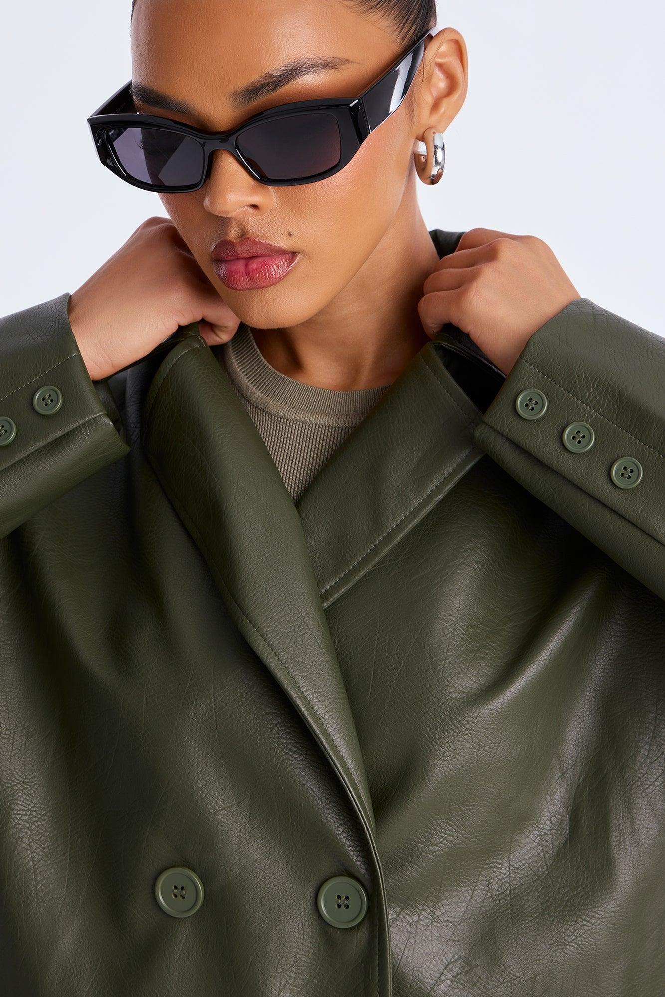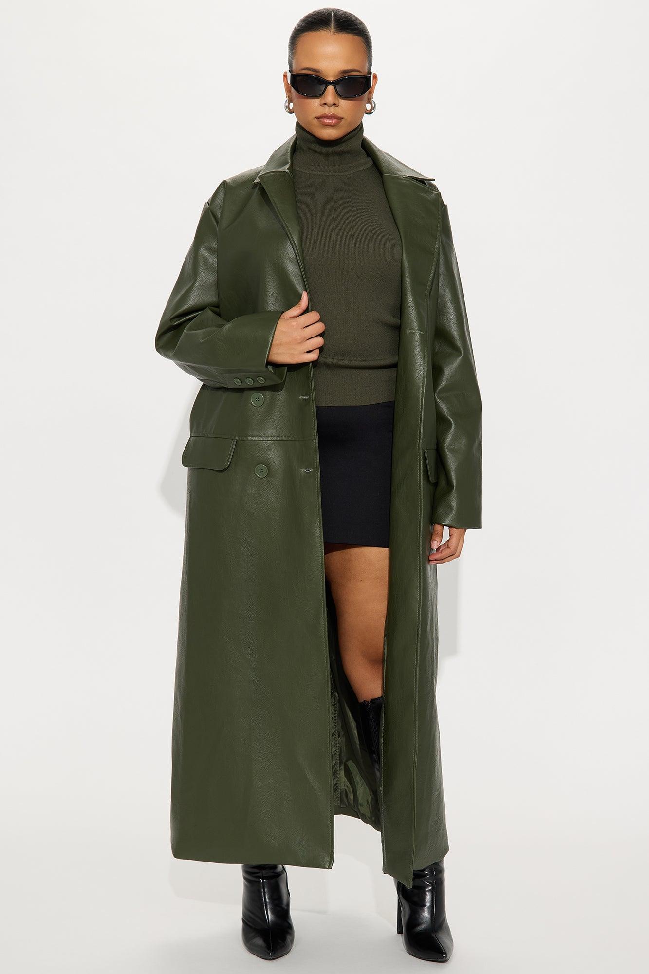 Drew Faux Leather Double Breasted Coat - Military Green Female