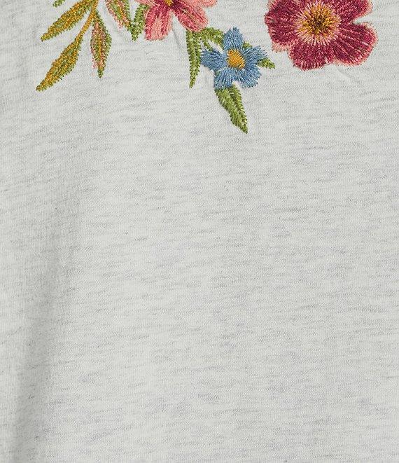 Driftwood Artistic Jersey Knit Floral Embroidered Crew Neck Short Sleeve Tee