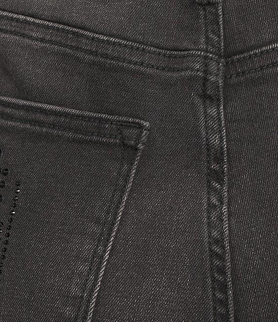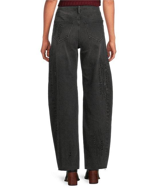 From Driftwood, these jeans feature: Stretch denim fabrication Barrel leg silhouette Embellished with tonal black rhinestones Belt loops 5 pocket styling Ankle length Front button and zipper closure Approx. 28" inseam Cotton/polyester/spandex Machine wash cold/line dry Imported.