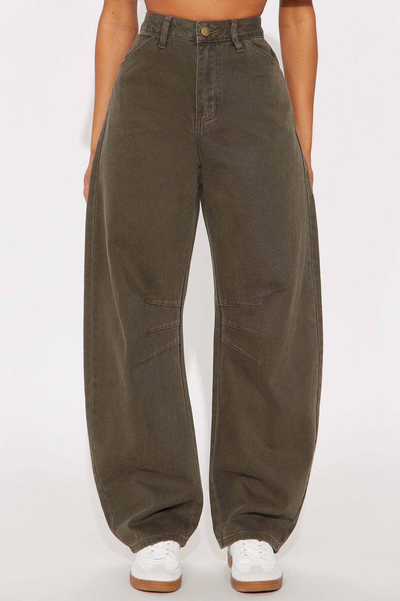 Drinks On Me Barrel Leg Jeans - Olive Female