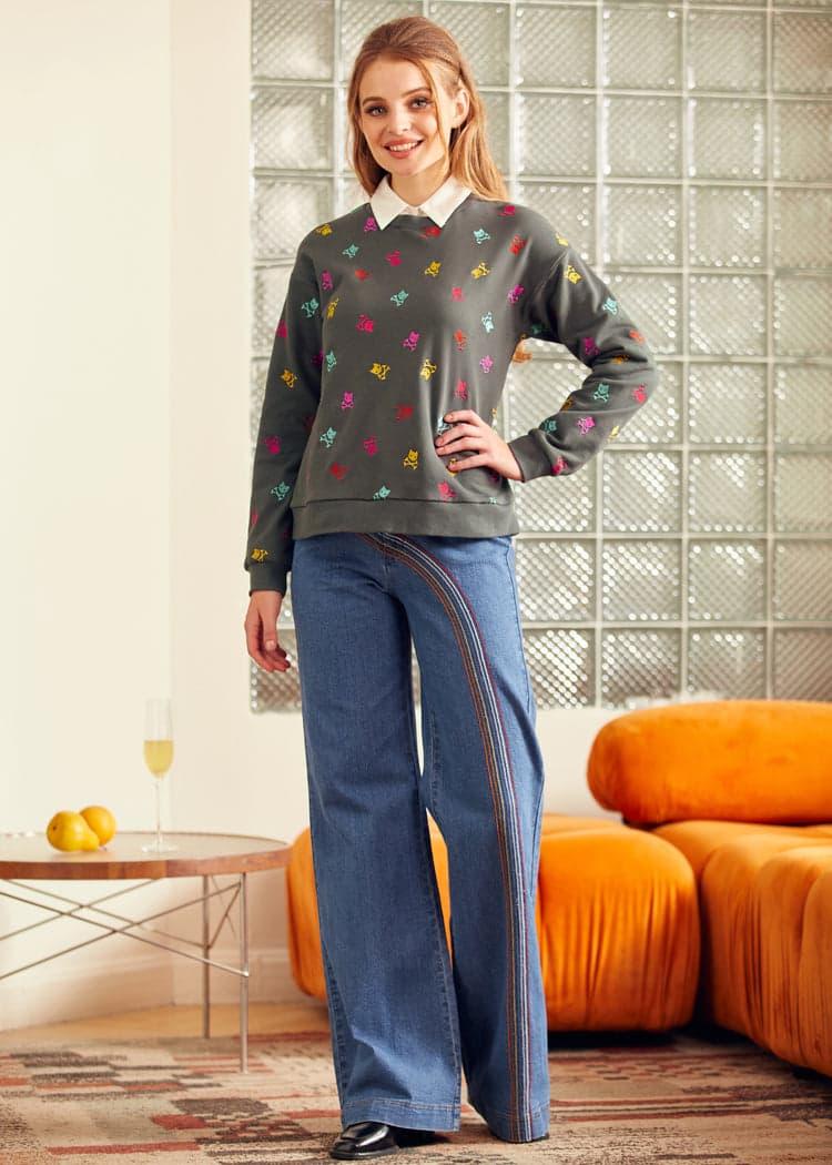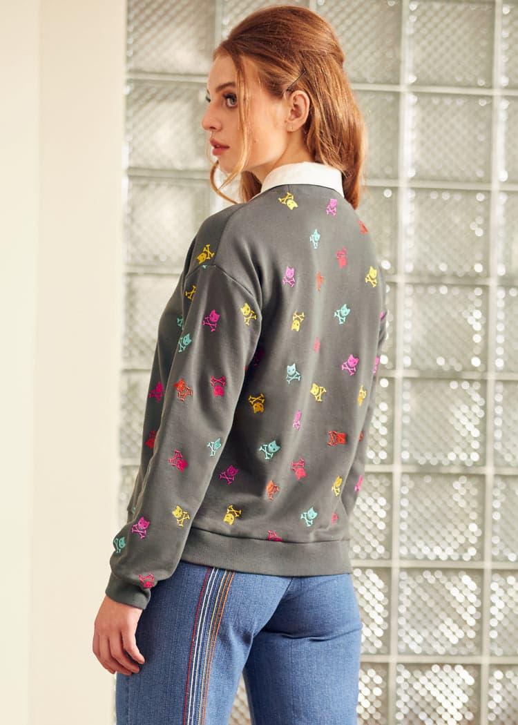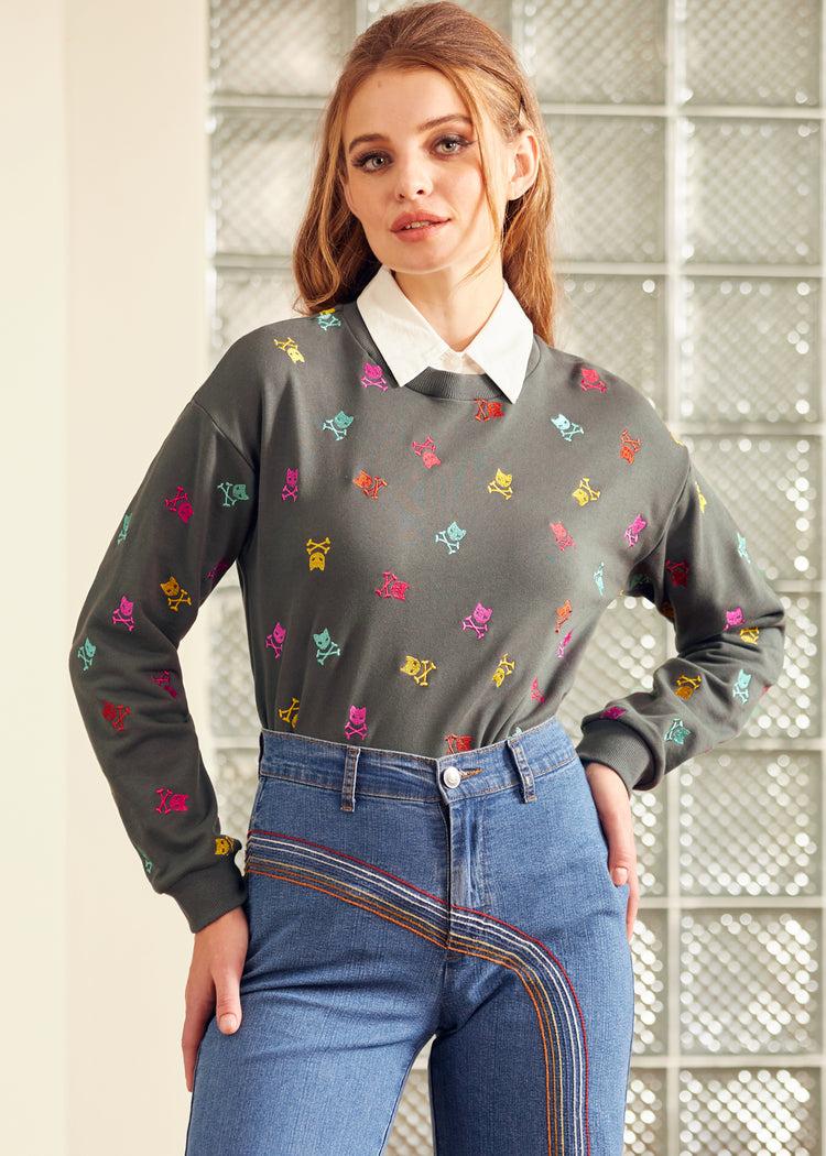Add a touch of retro allure with the Drive-In Diva Collar Sweatshirt in stormy shadow from our ModCloth namesake label. This dark gray woven piece features a standout contrasting collar and functional button details, perfect for a chilly evening at the drive-in or a casual weekend brunch.Machine wash cold, line dryLength 24"ImportedShell: 64% Cotton, 36% Polyester Contrast 1: 100% Cotton Contrast 2: 98% Cotton, 2% ElastaneModel is wearing a US size SModel Measurements: Height 5'6"/Bust 34"/Waist 24"/Hips 36"