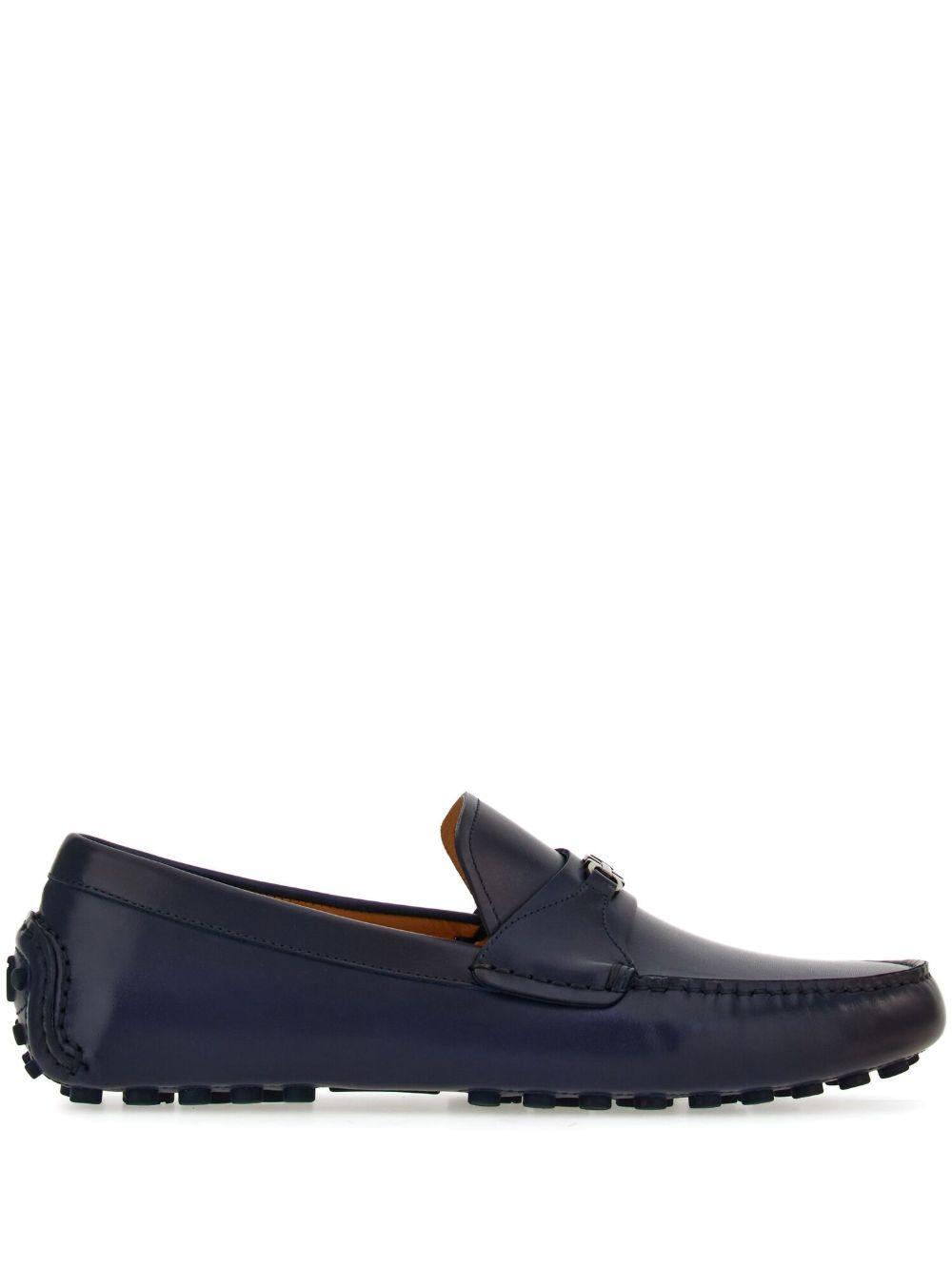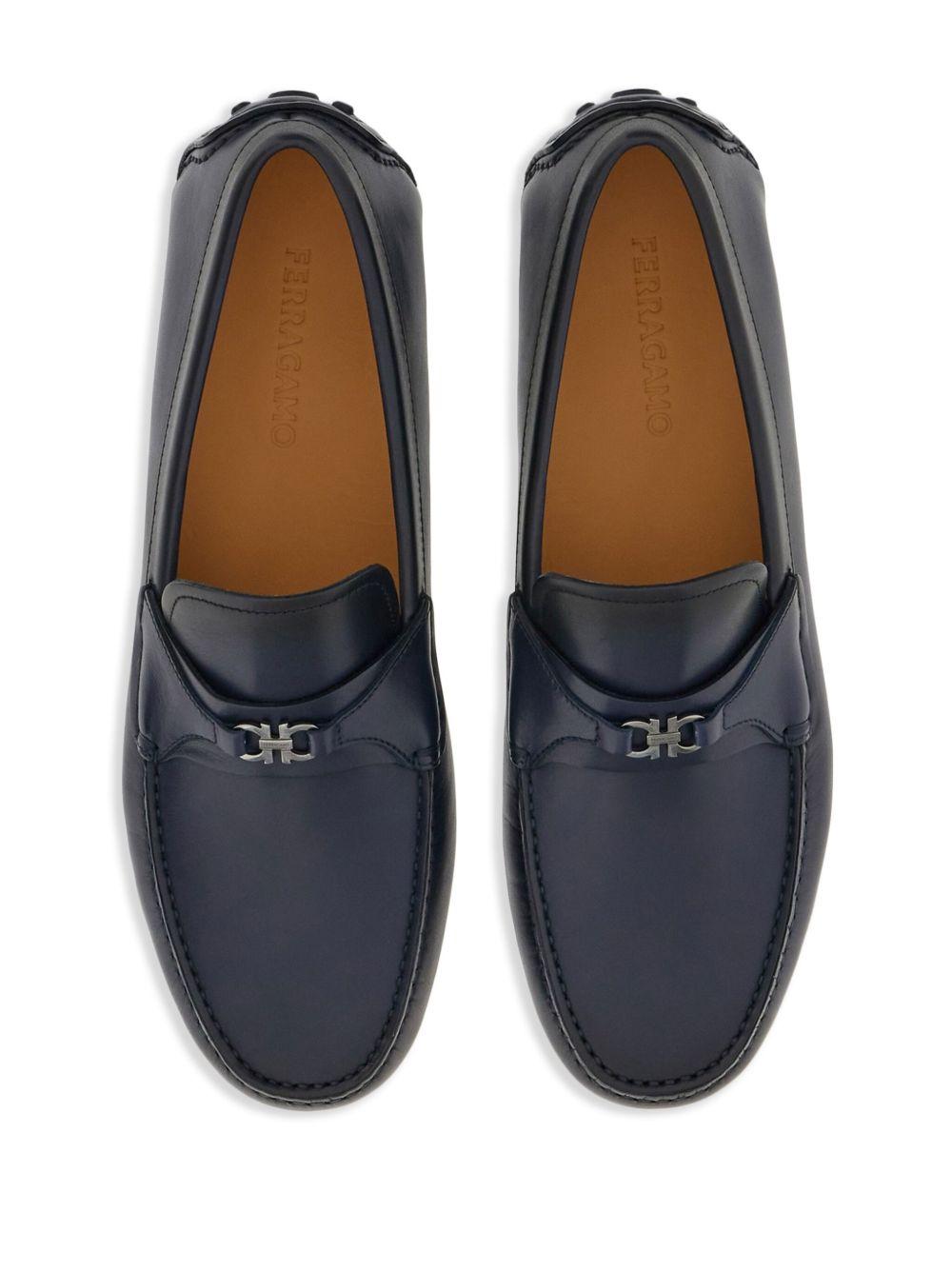 Shop Ferragamo Driver Gancini-buckle Leather Loafers In Blue from 800+ stores, starting at $483. Driver Gancini-buckle leather loafers from Ferragamo featuring navy blue, leather, goatskin, Gancini buckle, round toe, slip-on style, branded insole and flat sole.