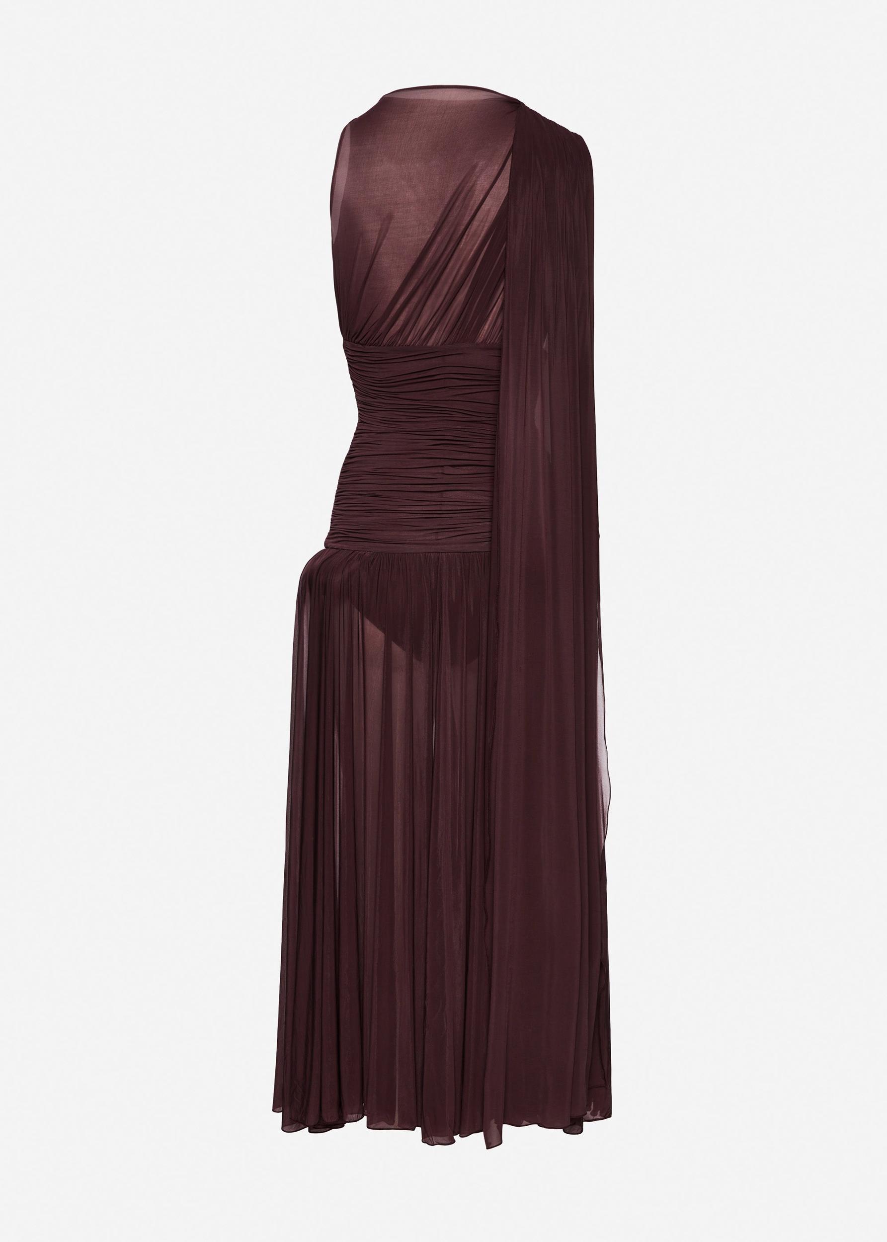 Drop-waist sheer midi dress in bordeaux