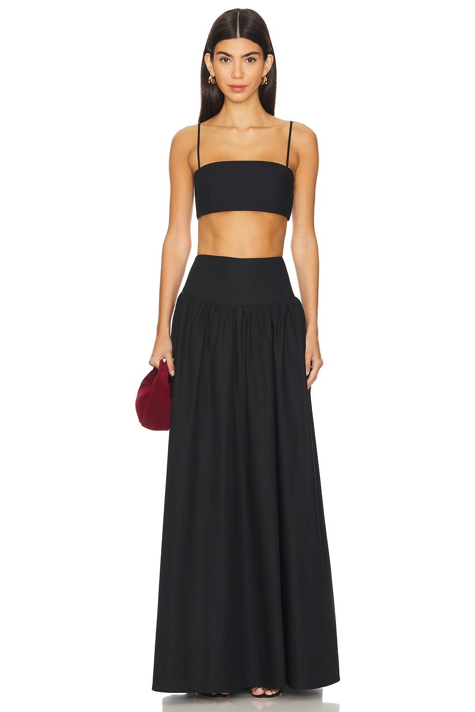 100% cotton. Made in China. Machine wash. Unlined. Hidden side zipper closure. Side seam pockets. Midweight poplin fabricItem not sold as a set. Skirt measures approx 43.5" in length. Revolve Style No. SUSA-WQ122. Manufacturer Style No. 0624cots00111.