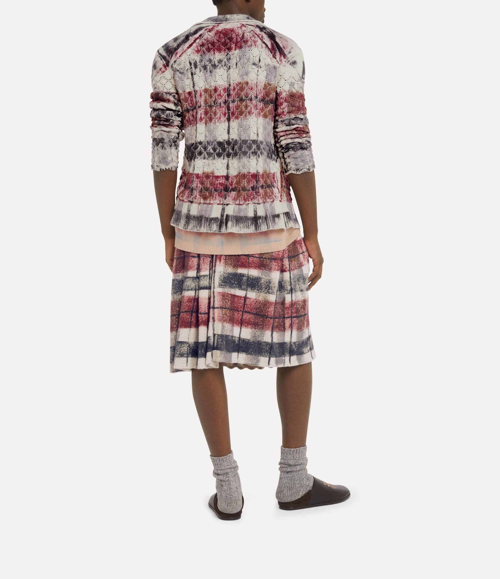 Our Dual Tartan kilt features a distressed tartan motif, inspired by traditional Scottish Highland regalia, finished with branded drawstring fastenings at the front. The high-rise waistband is contrasted with a pinstripe pattern, while the mid-length hem is delicately scalloped.
