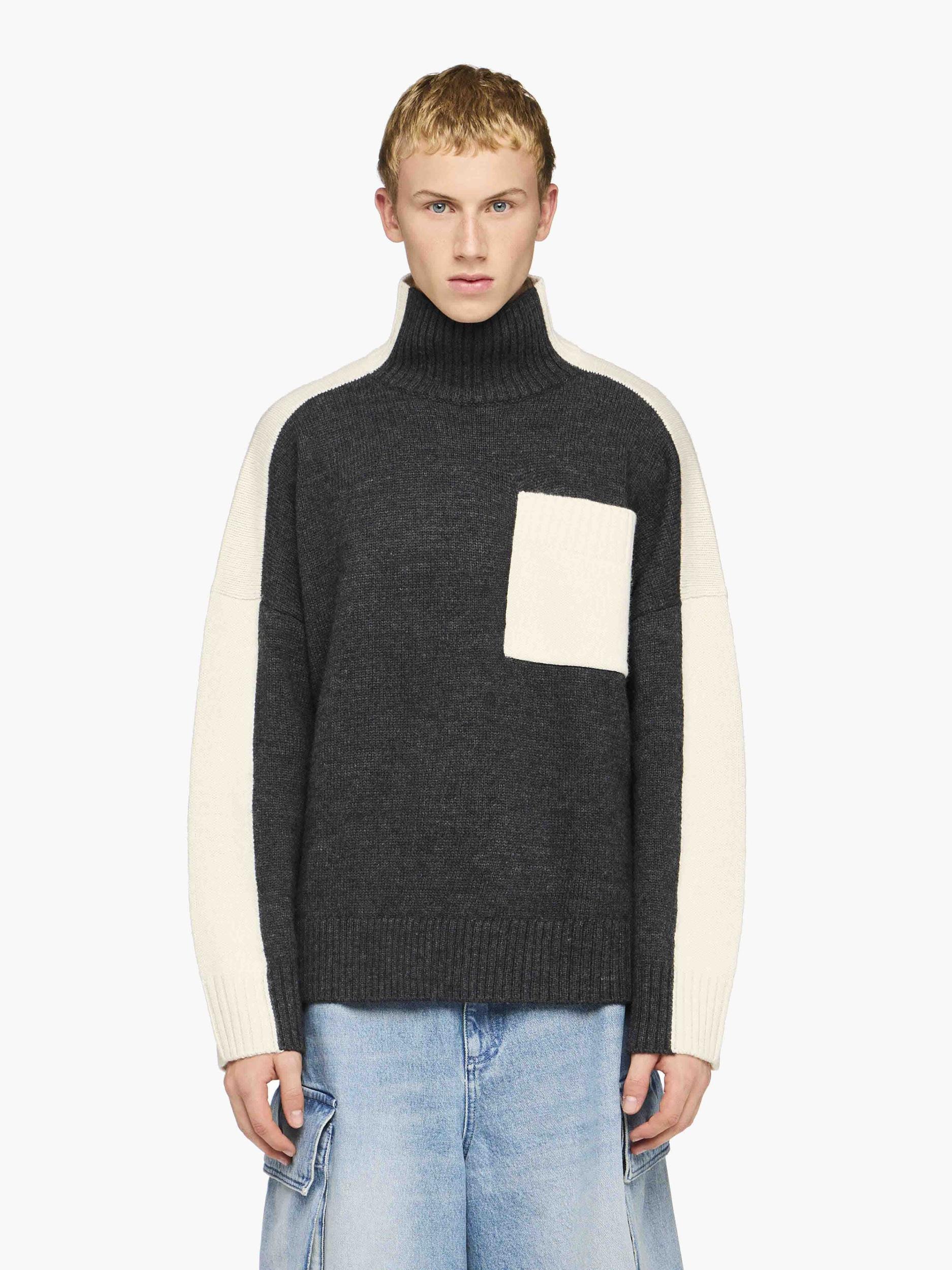 DUAL TONE - PATCH POCKET TURTLENECK SWEATER