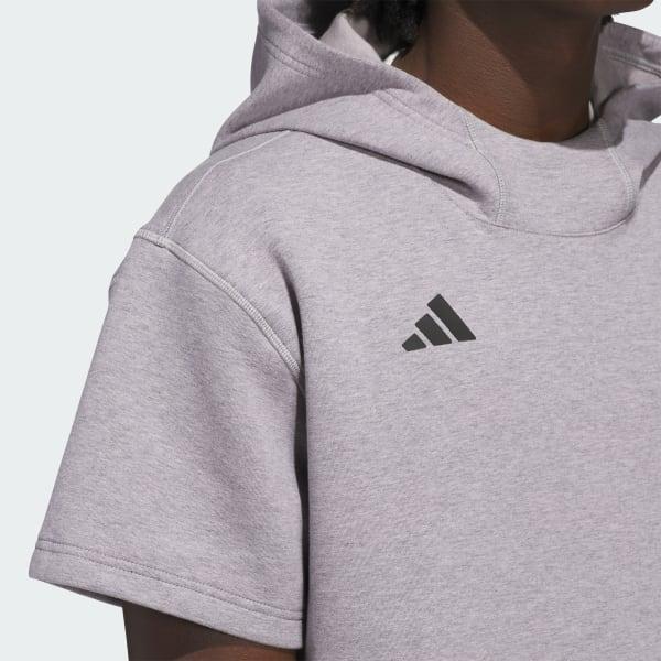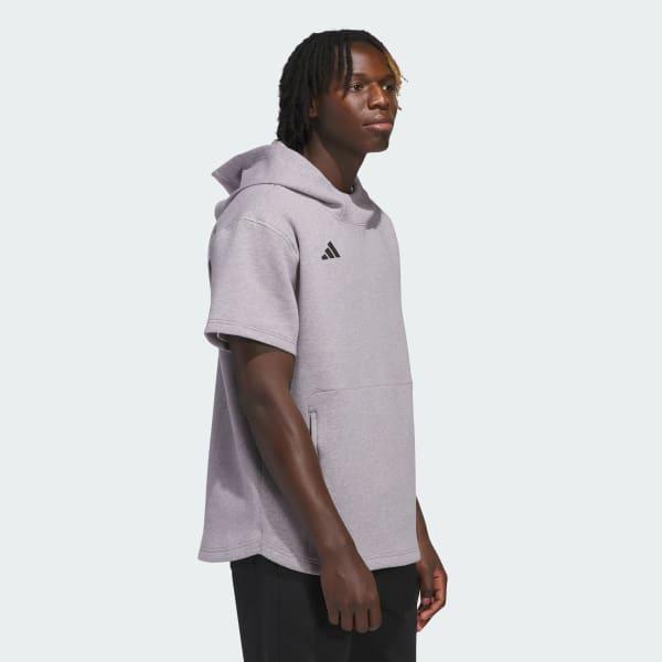 Get ready for game time in this short sleeve hooded sweatshirt from adidas. Built for comfort in the dugout, the batting cages or the field during pre-game drills, this sweatshirt fits loose and allows for a full range of motion on every throw and swing. The hood and kangaroo pocket provide all the warmth you need.