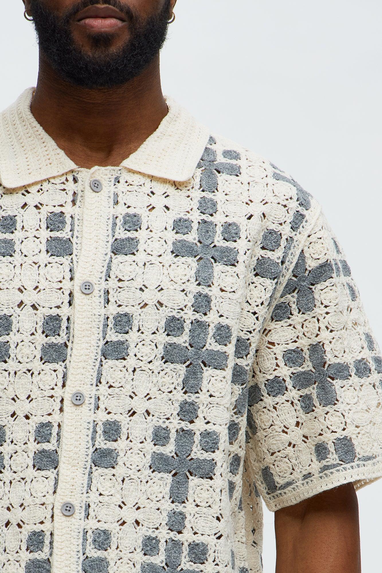 Dull Colored Flowers Closed Collar Shirt - Cream/combo Male