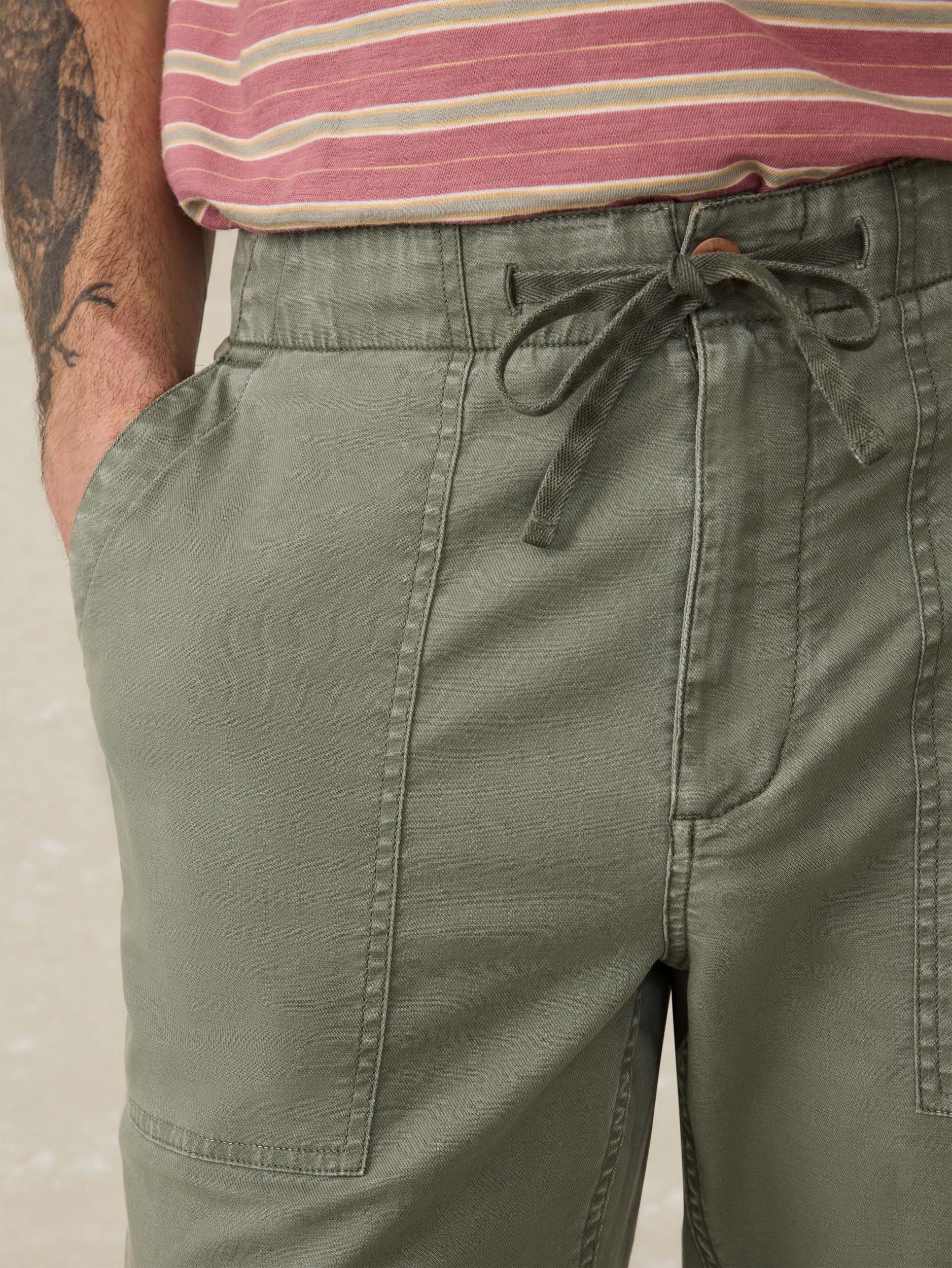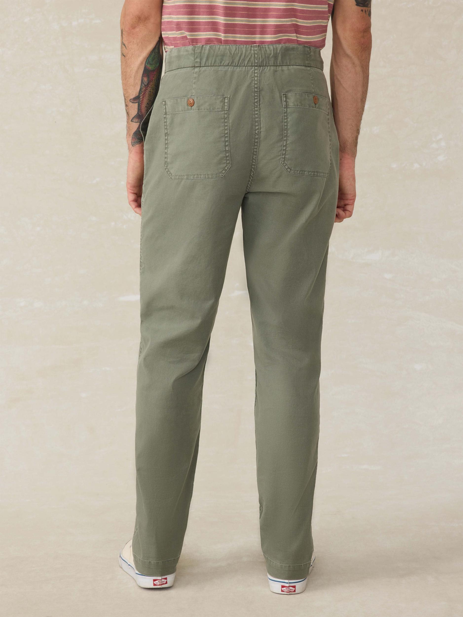 Easy-going vibes, rugged appeal. Effortlessly broken-in, these pants feel like old favorites from the very first wear with a stretch twill fabric and garment-dyed finish. We added an elastic back waistband for all-day ease and a drawcord to ensure the perfect fit. Fit: Relaxed Fit, 31" Inseam Detail: Stretch twill pull-on utility pant with patch pockets, elastic back waistband with drawcord. Garment dyed. Material: 98% Organic Cotton, 2% Spandex Model: Kyle is 6'0 wearing size Medium Care: Close all fastening before wash. Turn inside out. Machine wash cold with like colors. Delicate cycle. Do not bleach. Tumble dry low. Remove promptly. Cool iron when needed. MBS2506-DOE