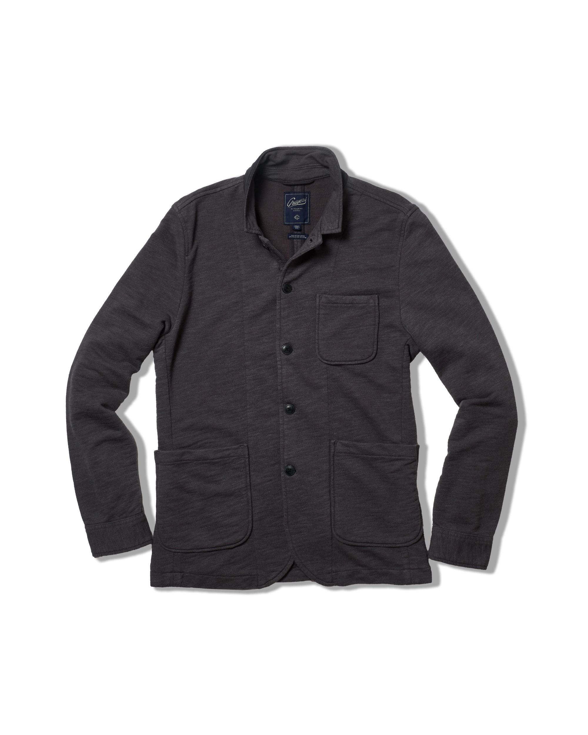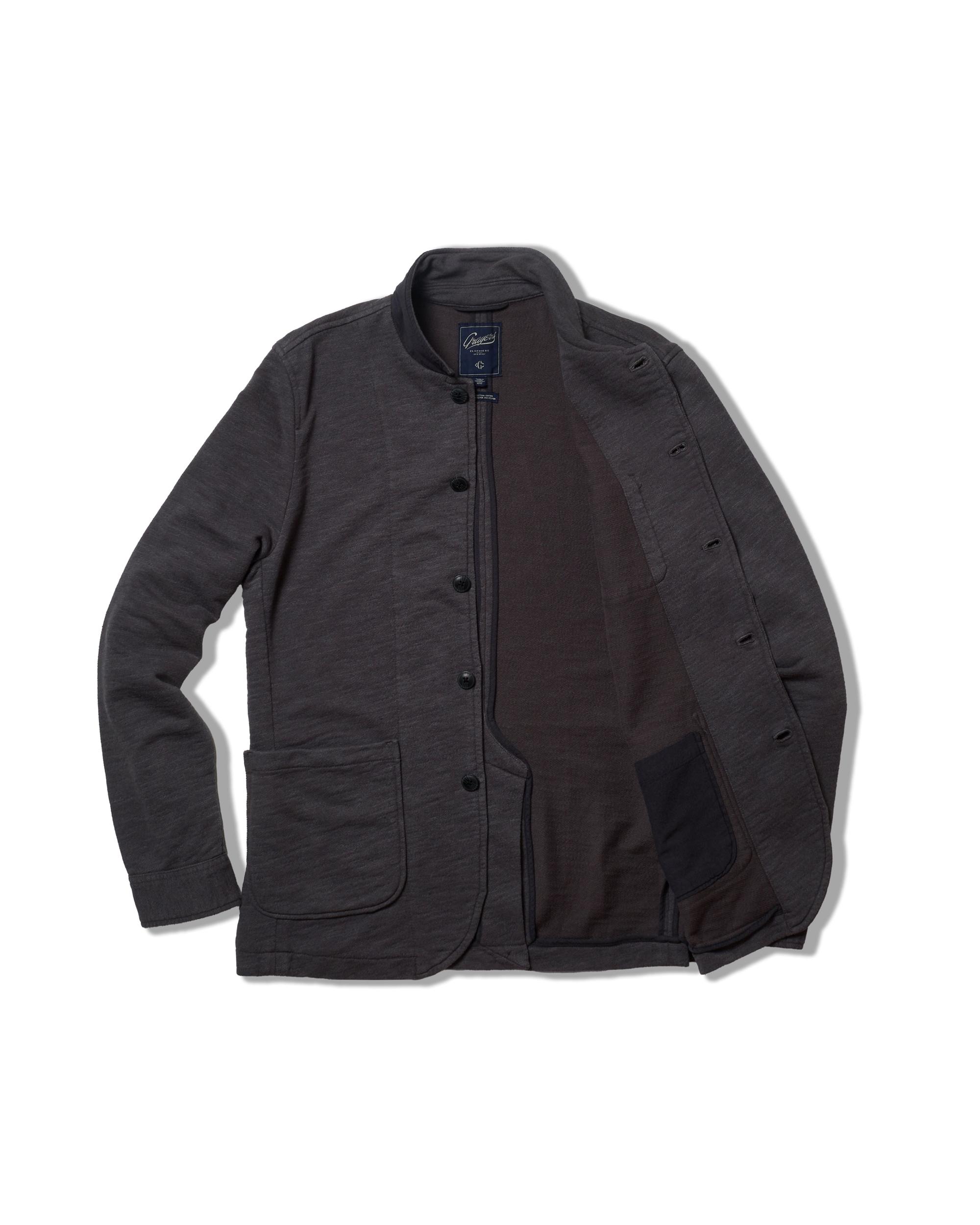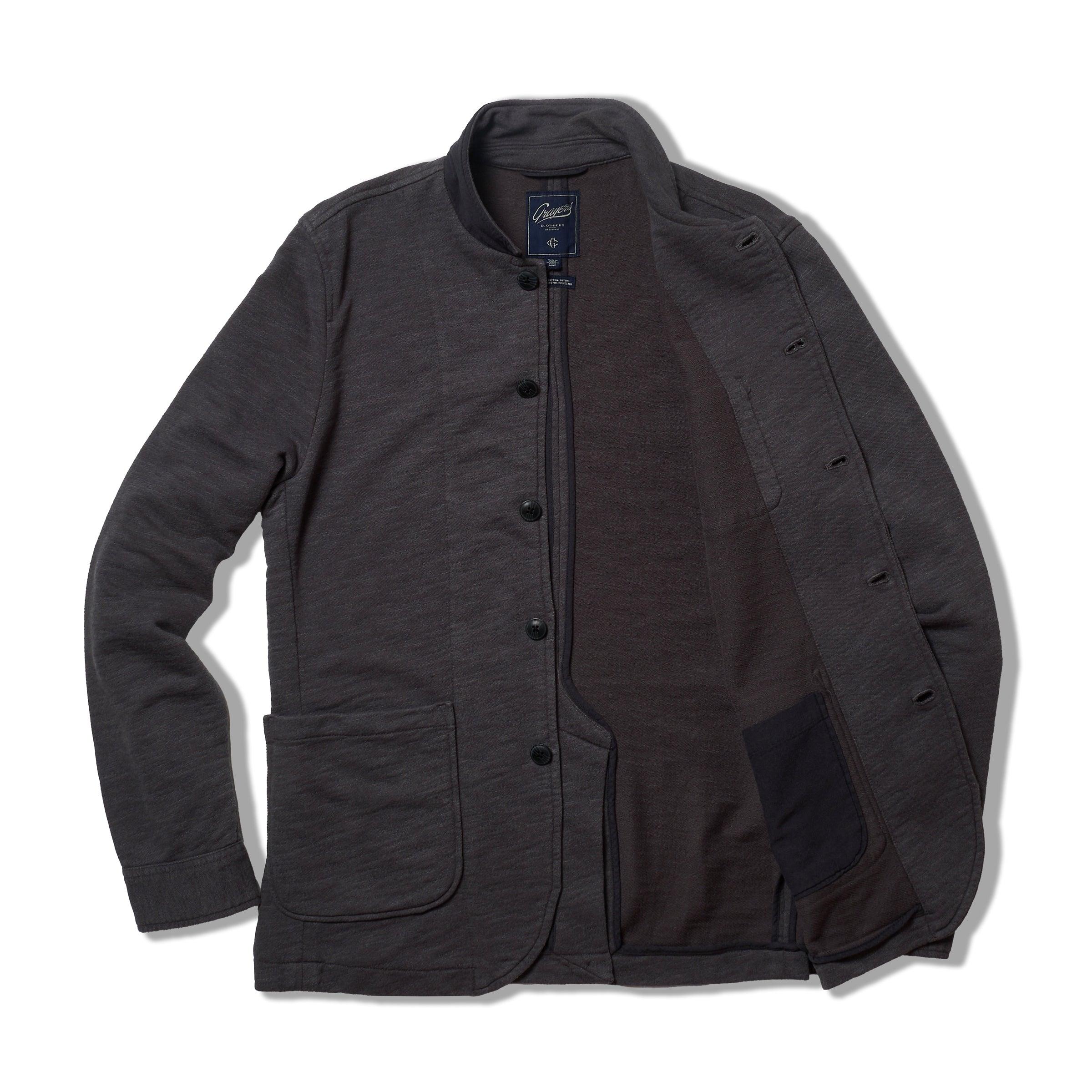 The stand up collar has made a permanent home for itself. Apparently, it's what all the cool kids are wearing and we found no better way to build on our success than with the reinvention of the classic sporty loop back terry. Featuring 5-button front closure, stand up collar, chest patch pocket, shirt cuffs with 2-button adjustable closure and detailed with chambray piped seams. Finished with a weathered garment dye bath. Wear it with denim or our popular Alternative 5-pocket pants. The Model is also wearing: Model: ----Details---- Stand up collar 5 Button closure Chest patch pocket Two bottom pack pockets Chambray piped seams Single vent Heather yarn Garment dyed Chambray hanger loop Imported ----Materials---- 80% Cotton 20% polyester ----Size & Fit---- Measuring Method: All measurements are in inches and based on a flat garment, as shown below. For comparison with one of your existing garments, please lay garment on a flat surface and follow the key measurement points. For chest and neck, if you double the flat measurement, you will get close to the full body measurement. ----Care---- Machine Wash Cold Separately Do Not Soak Before Washing Do Not Bleach Remove Promptly Tumble Dry Low Or Hang Dry In Shaded Area Cool Iron If Necessary