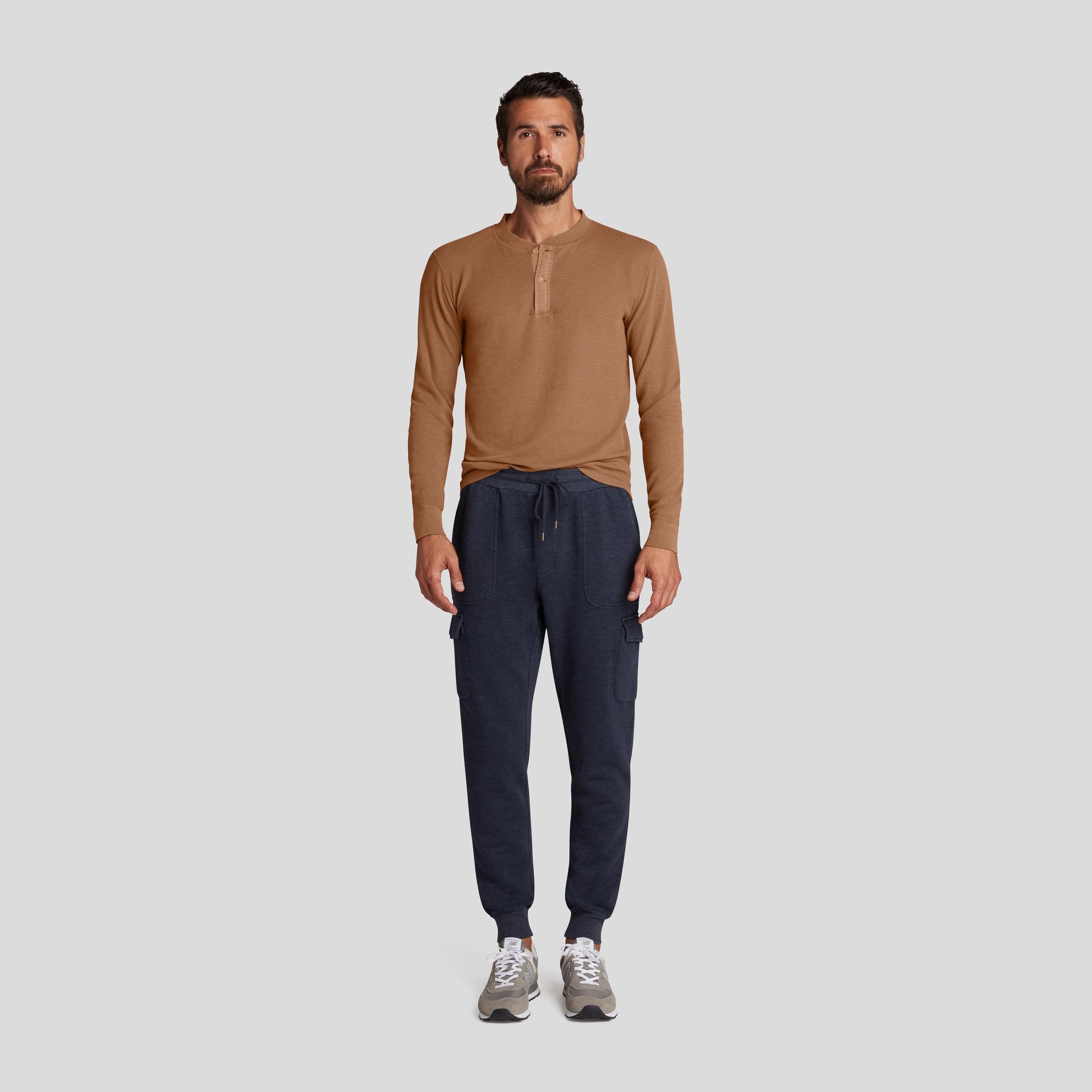The Dunlop Utility Jogger is part of a new range of garment dyed brushed fleece, constructed with premium heather yarn and over-dyed into saturated fall colors. Detailed with an elastic rib and drawcord, deep side pockets, button through cargo pockets and ribbed leg opening. The Model is also wearing: New Windsor Double Cloth Henley - Rubber Model: Anderson is wearing size medium and is 6'2". ----Details---- Elastic rib and drawcord Deep side pockets Two button through flap cargo pockets One rear patch pocket Rib leg opening 29" inseam Imported ----Materials---- 80% Cotton 20% Polyester ----Size & Fit---- Measuring Method: All measurements are in inches and based on a “flat” garment, as shown below. For comparison with one of your existing garments, please lay garment on a flat surface and follow the key measurement points. ----Care---- Machine Wash Cold Separately Do Not Soak Before Washing Do Not Bleach Remove Promptly Tumble Dry Low Or Hang Dry In Shaded Area Cool Iron If Necessary