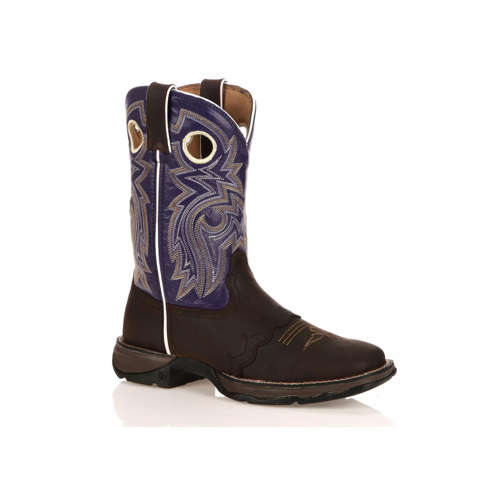 With a bit of feminine flare, this Lady Rebel by Durango Saddle lace western combines functionality and style. The tempered steel shank provides stability for long work days while the ultra light weight dual density EVA flirt outsole keeps this boot easy to wear. The contoured, ventilated, removable cushion footbed lets your foot breathe while being supported. The cushion flex insole provides all day comfort and relief.This shoe boasts full-grain leather upper and a double row welt stitch. Lady Rebel stands 10" in height with a rocker heel.The rolled shank and square toe combine classic western style with a bit of modern design.