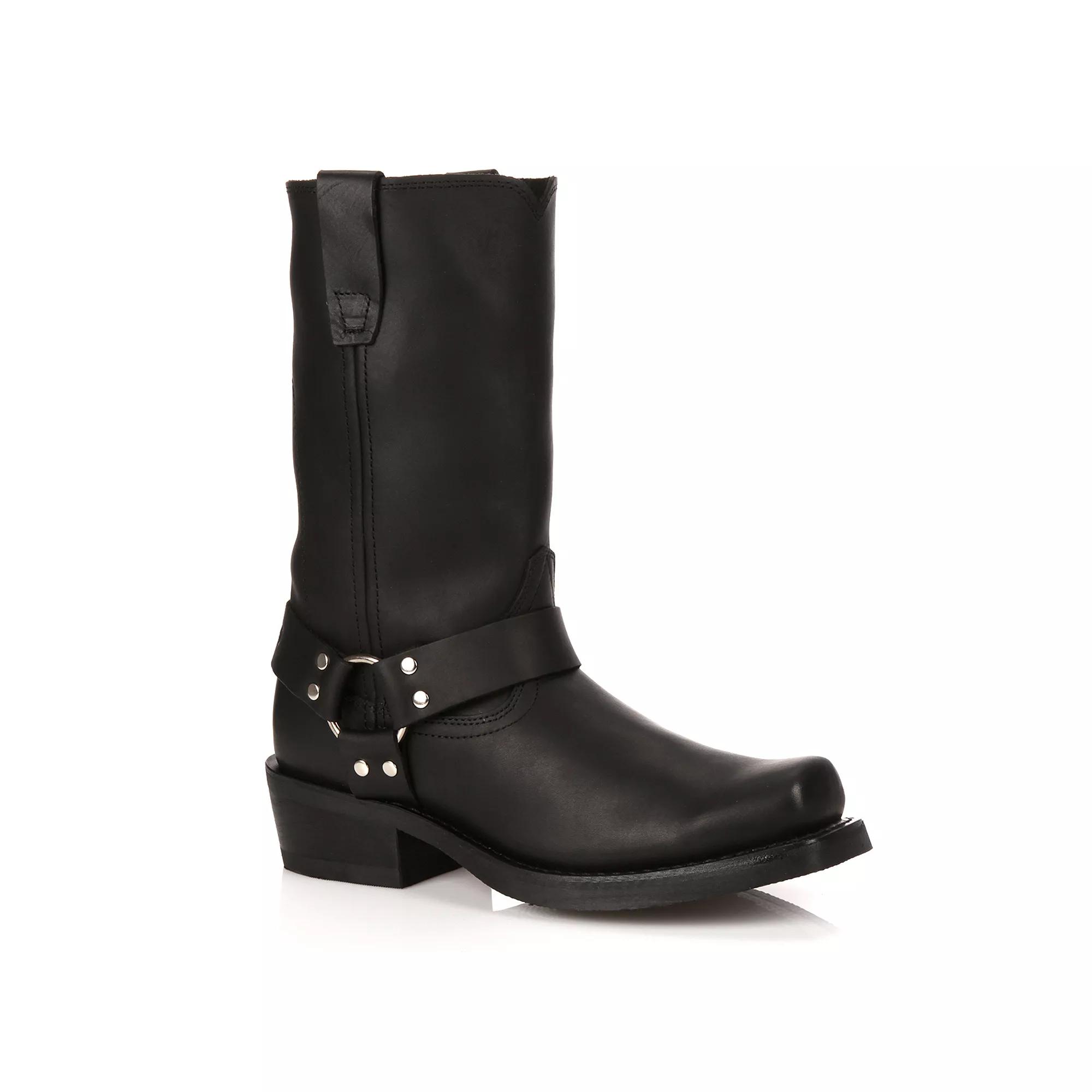 Durable construction and classic design make these women's Durango harness Western boots a must-have boot. Click this FOOTWEAR GUIDE to find the perfect fit and more! - https://www.kohls.com/feature/shoesizeguide.jsp. Watch the video to find out how to perfectly fit your boots. - https://media.kohlsimg.com/is/content/kohls/mp4/1708/KOHLSBootFitGuide_VDEO.mp4. SHOE FEATURES: Leather shaft lining. Taped side seams. Cushion insole with flex forepart. Durango Harness Oil-Resistant Outsole. Buckle and stud details. SHOE CONSTRUCTION: Leather upper & lining. Rubber outsole. SHOE DETAILS: Square toe. Pull-on. Padded footbed. 1-in. heel. 11-in. shaft. 14-in. circumference. Brown style no. RD594. Black style no. RD510. Size: 10 Med. Gender: female. Age Group: adult. Pattern: Solid.