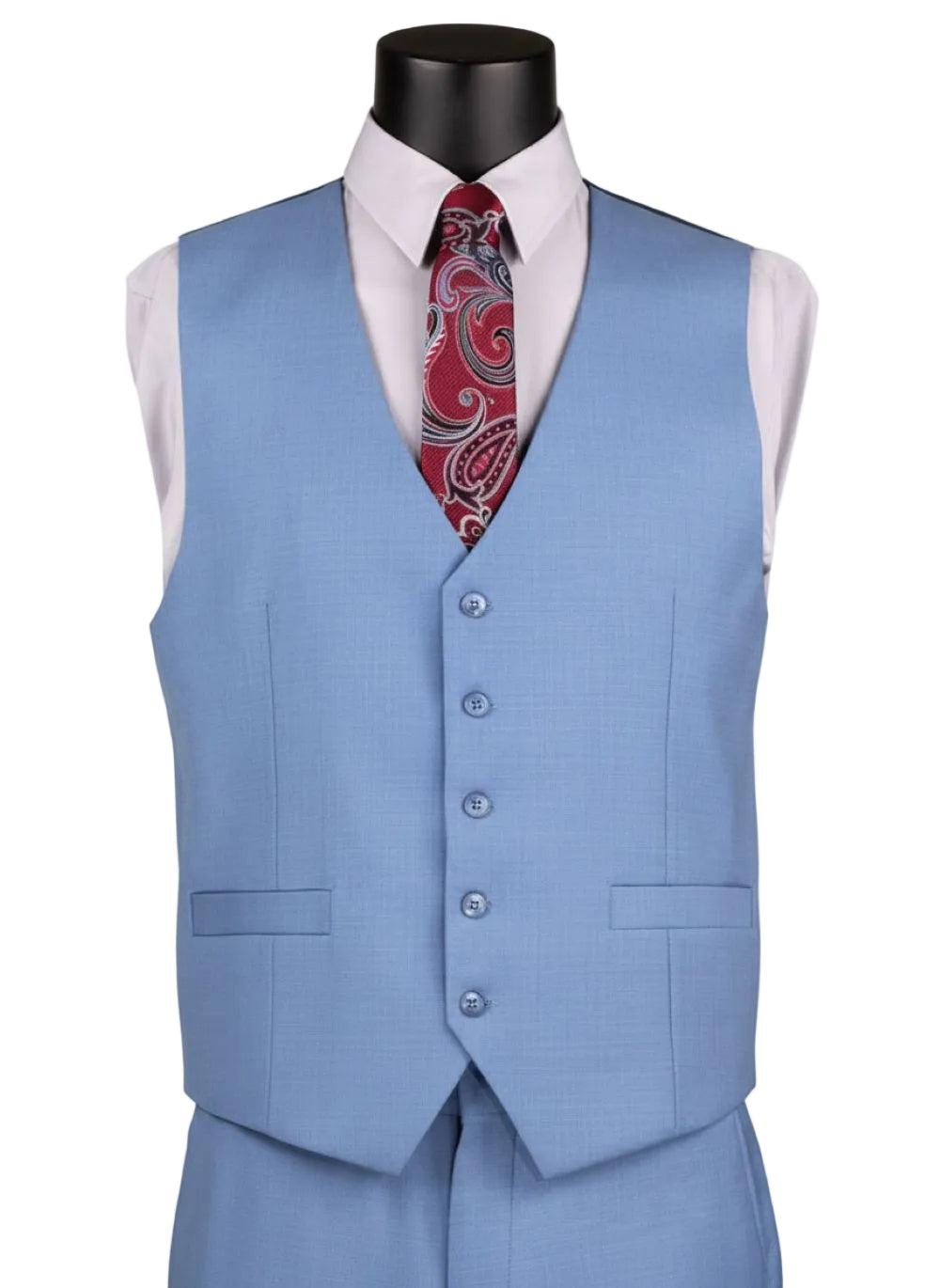 Dusty Blue Regular Fit 3 Piece Suit with Vest and Adjustable Waistband Pants