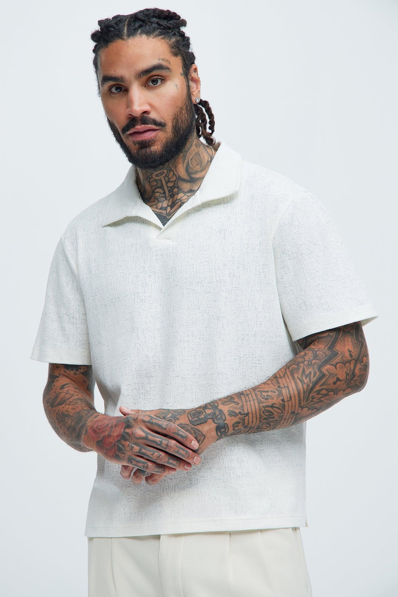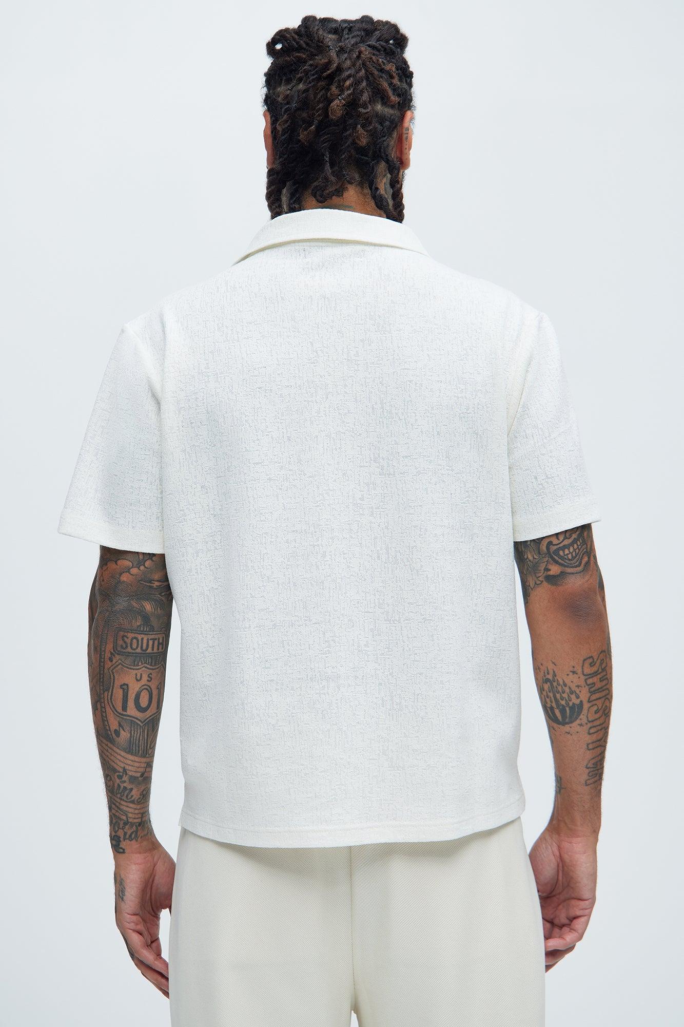 Duval Textured Knit Johnny Collar Shirt - Off White
