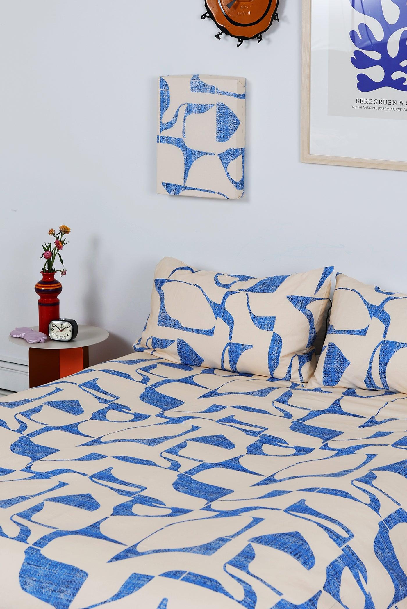 Drift off into dreamland in our new duvet set in Lapis Sky. The whimsical Lapis Sky pattern reminds us of how it feels to look up on a summer day and discover shapes in the clouds. Organic blue shapes and squiggles on a canvas like backdrop. Crafted from the finest 300 thread count cotton sateen. Silky smooth softness that’s designed to get better with every wash. Includes one duvet cover with a zipper closure and two matching pillowcases, perfectly coordinated for your sanctuary. Sweet dreams start here. Twin Duvet - 74in x 98in (2 Standard Size Pillow Cases - 20in x 28in) Full/Queen Duvet - 95in x 98in (2 Standard Size Pillow Cases - 20in x 28in) King Duvet - 104in x 90in (2 King Size Pillow Cases - 20in x 36in)300 Thread Count | Cotton SateenMachine Wash ColdGentle CycleDo Not BleachCool Iron When NeededDo Not Tumble DryMade in a fair trade factory in India; Designed and developed in NYC.