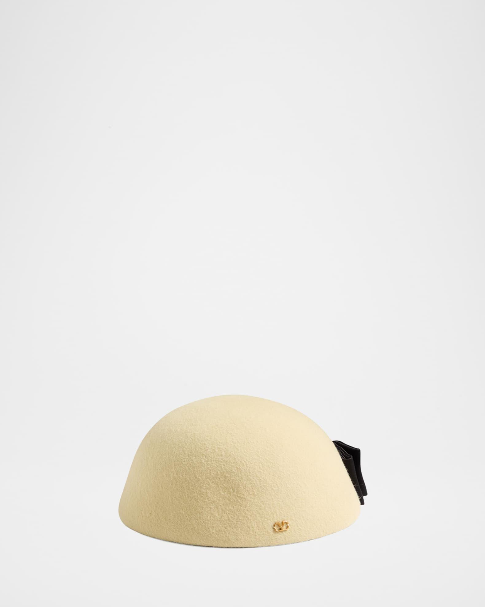 Valentino beret in dyed rabbit hair (Italy) Features a contrasting bow neatly tied on the front Round crown Animal hair Made in Italy