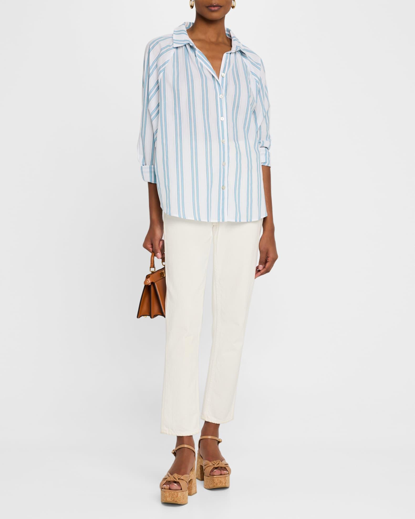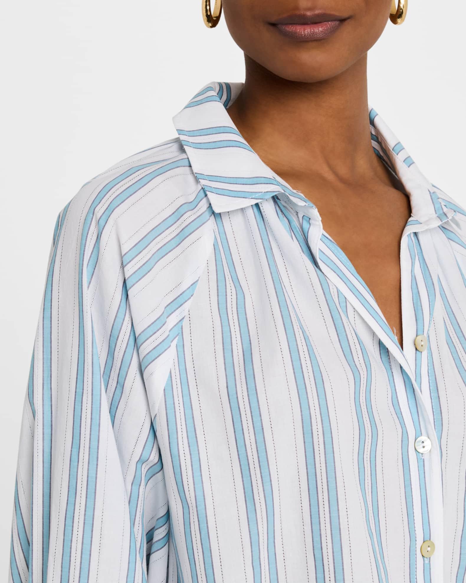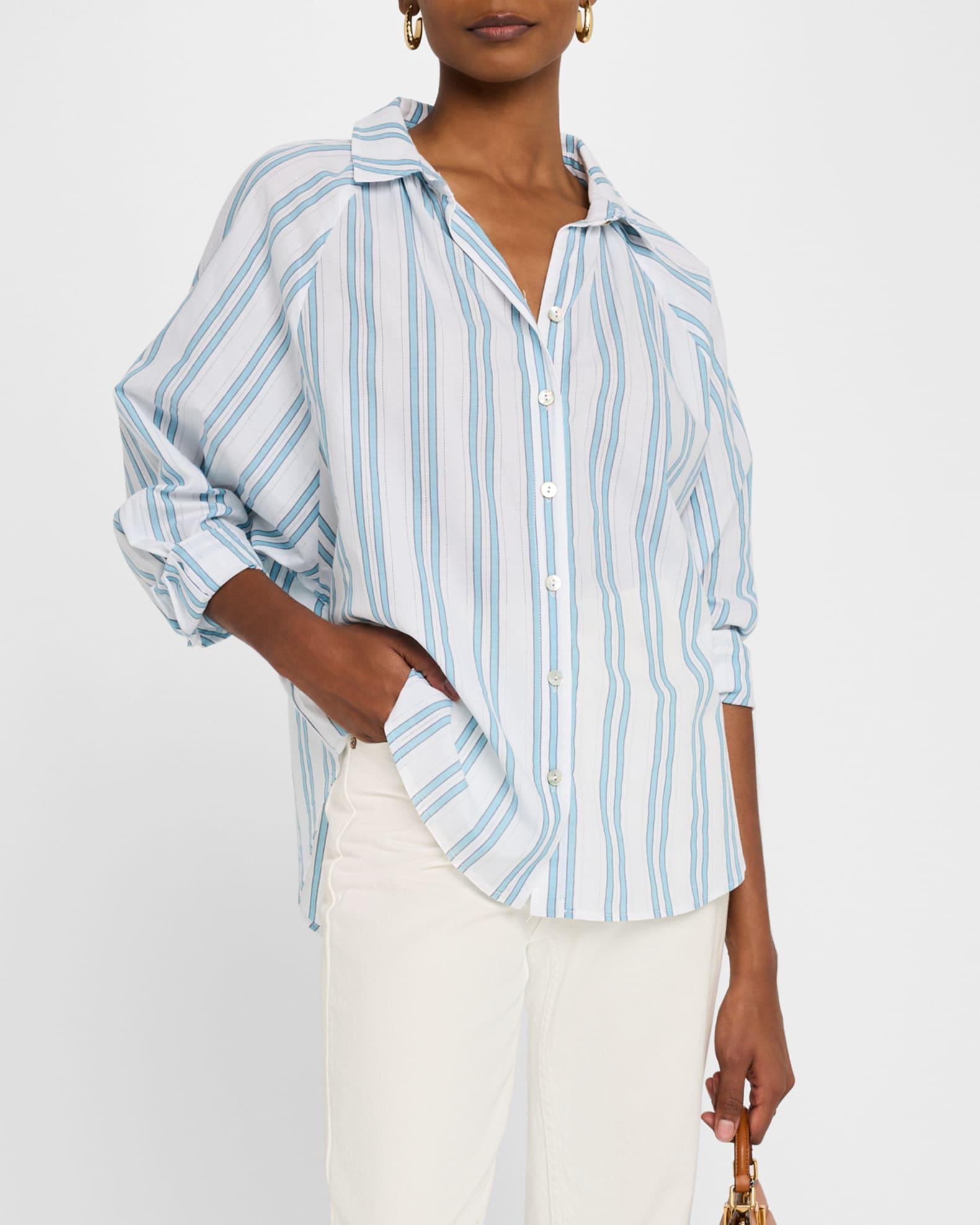 Finley "Dylan" shirt with printed and drop needle stripes Approx. 28"L from shoulders to hem Spread collar; button front Long raglan sleeves; approx. 24"L Button cuffs Shirttail hem Relaxed fit Cotton Unlined Machine wash cold Made in the USA from imported materials