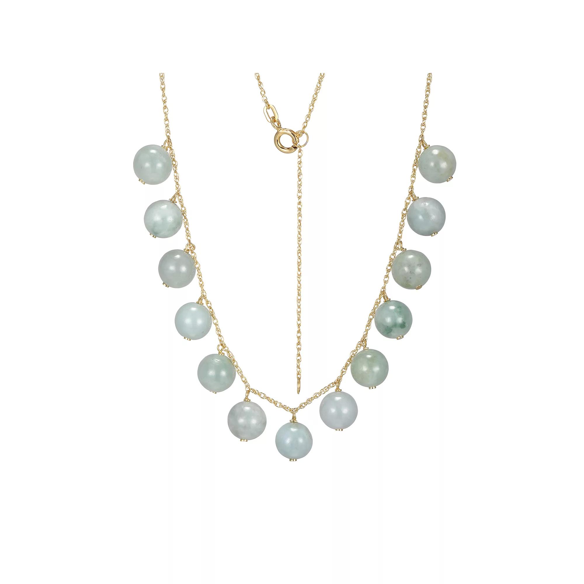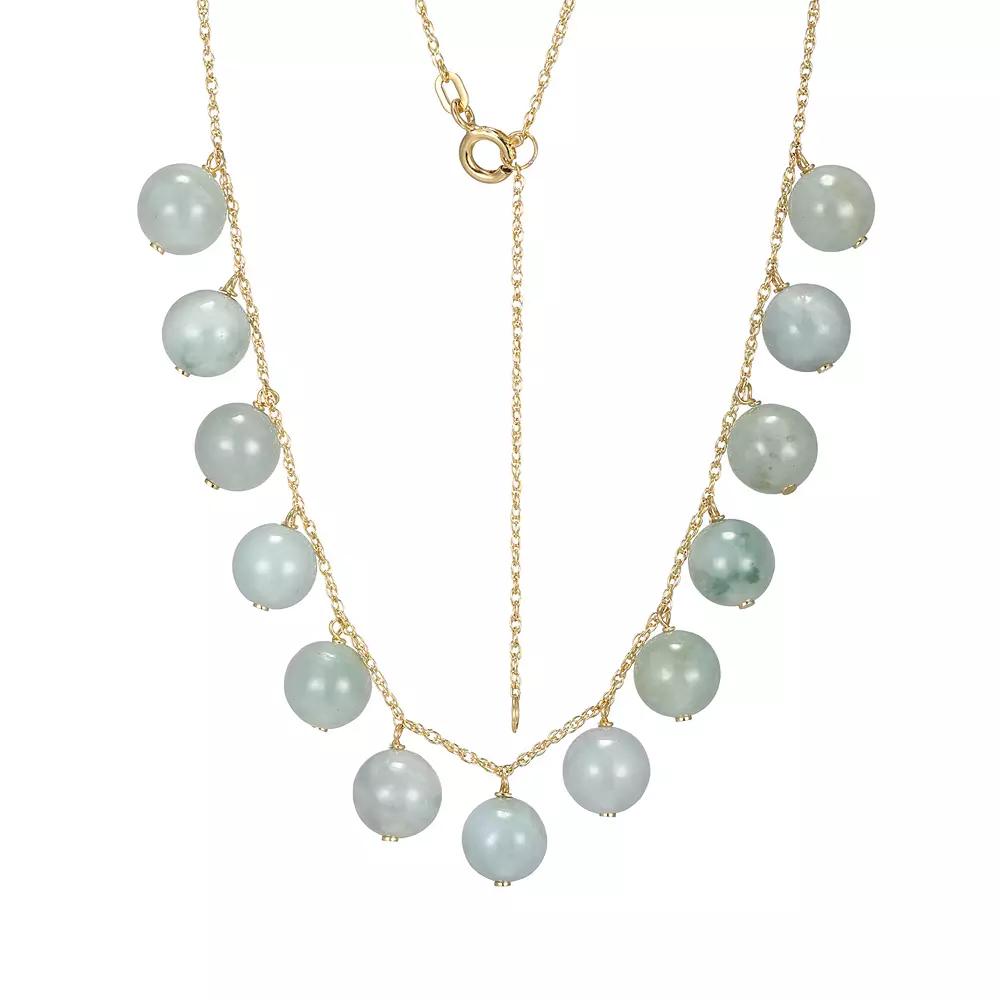 Bring your look to life with this stunning 18k gold over silver green jade necklace. Click on this JEWELRY & WATCHES GUIDE to learn about fit, styles, materials and more! Bring your look to life with this stunning 18k gold over silver green jade necklace. Click on this JEWELRY & WATCHES GUIDE to learn about fit, styles, materials and more! FEATURES Drop length: 0.625 Chain length: 18 in. with 2-in. extender Chain type: rope Metal: sterling silver Plating: 18k gold Finish: polished Nickel free Packaging: boxedSTONE DETAILS Stone type: jadeite jade Center stone size: 8 mm Shape: bead Gemstones may have been treated to enhance their appearance. Special care may be required. Please visit our Gemstone Treatment & Special Care Guide for more information. Please note, due to the high value of this item, a signature may be required upon delivery. Size: 20. Gender: female. Age Group: adult.